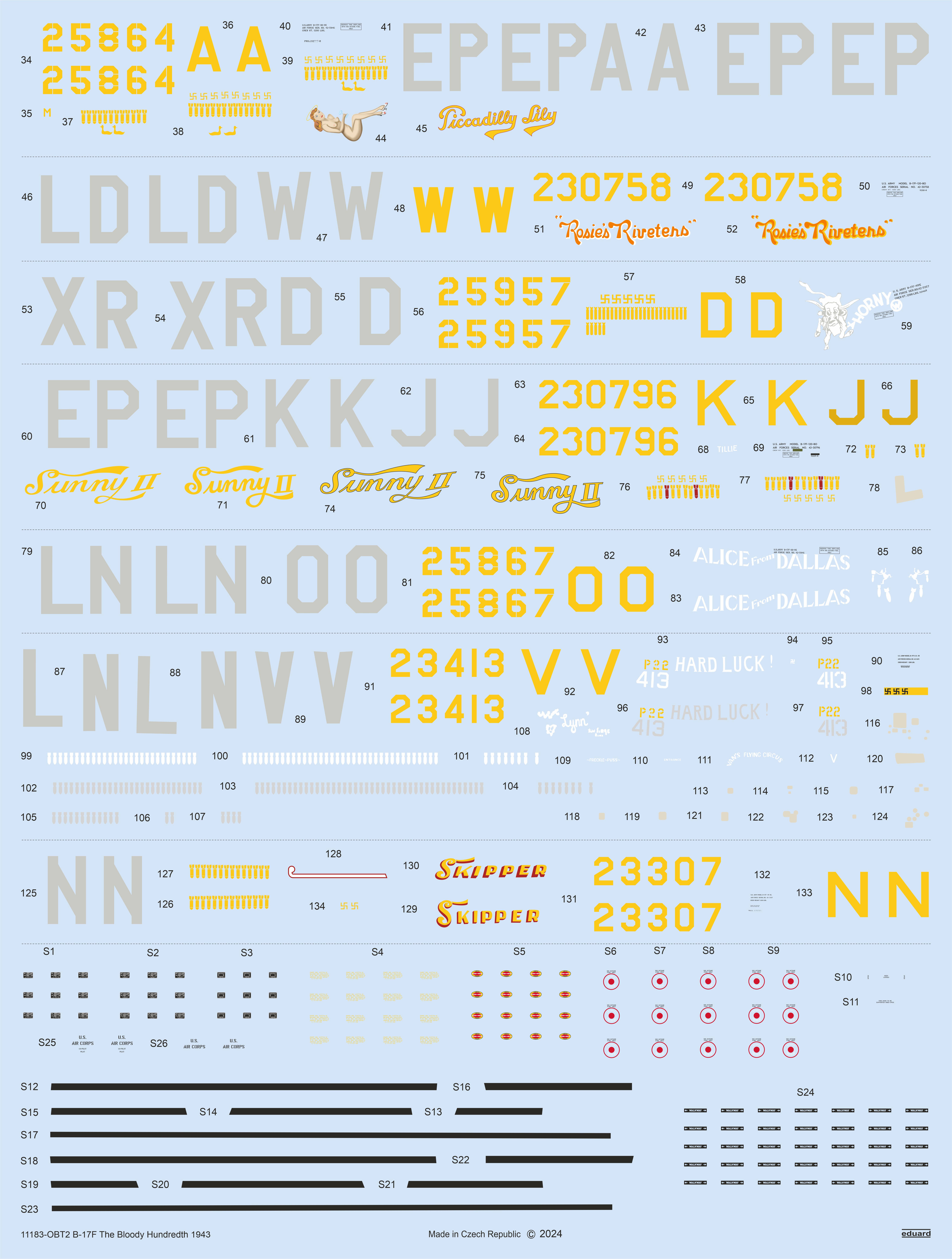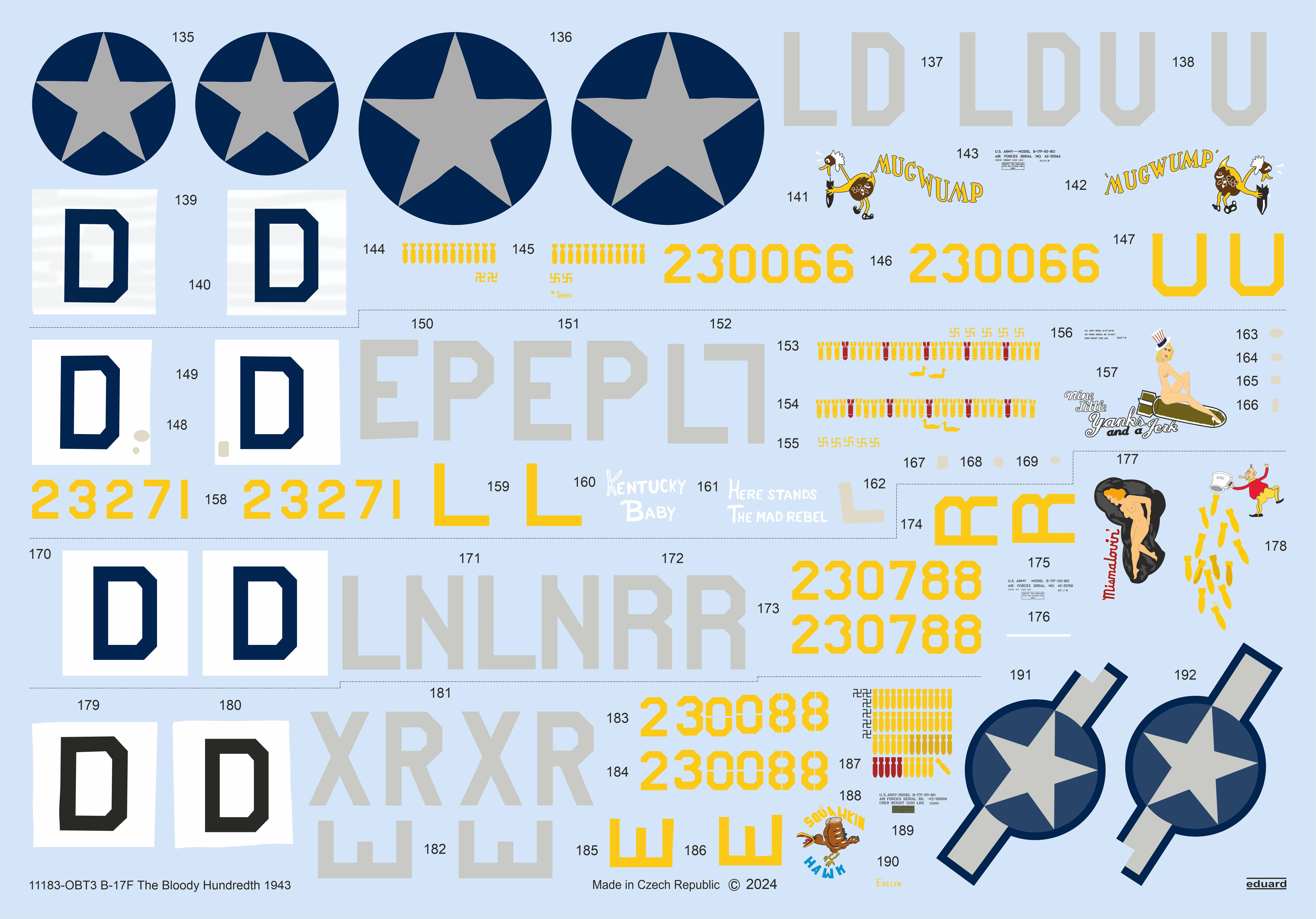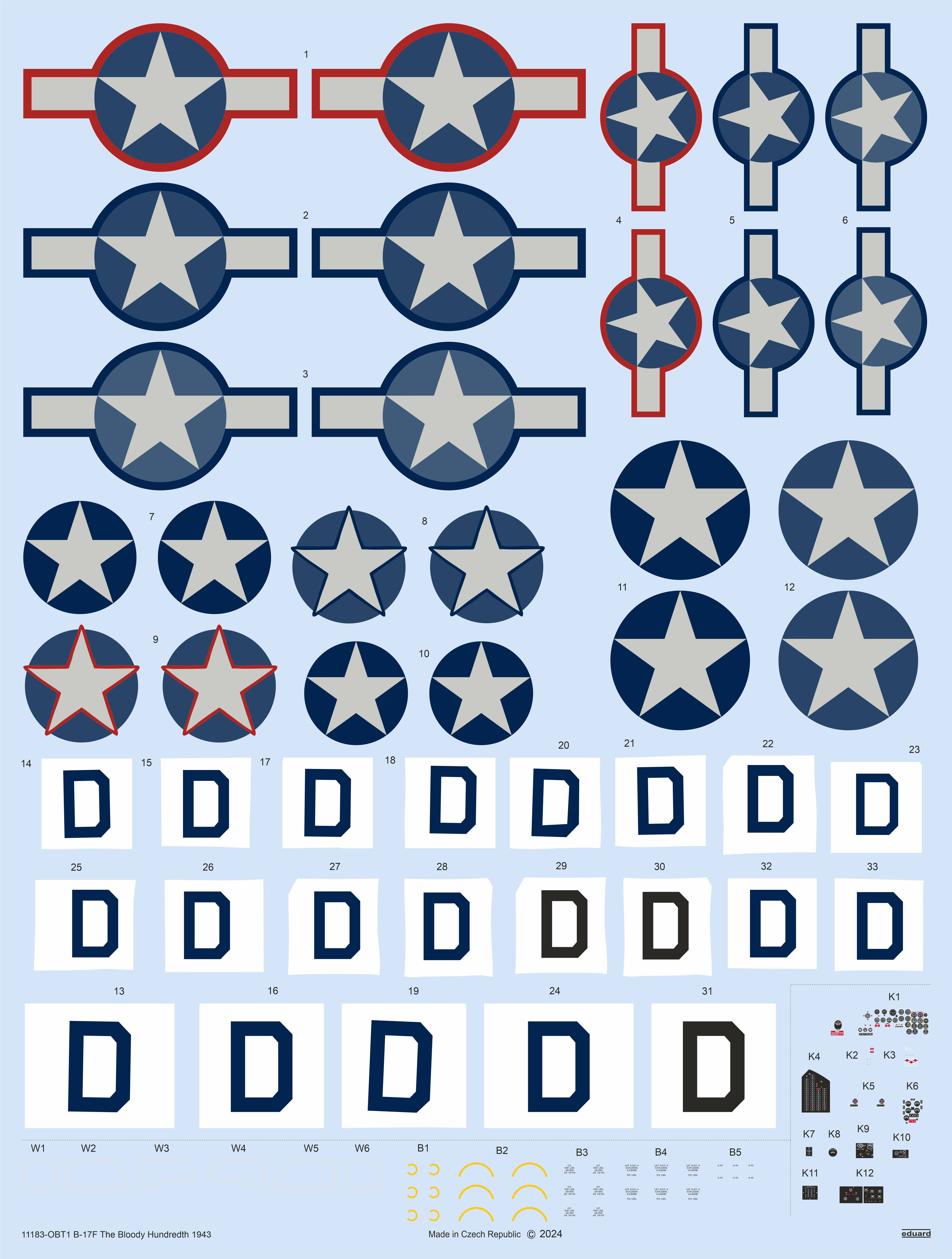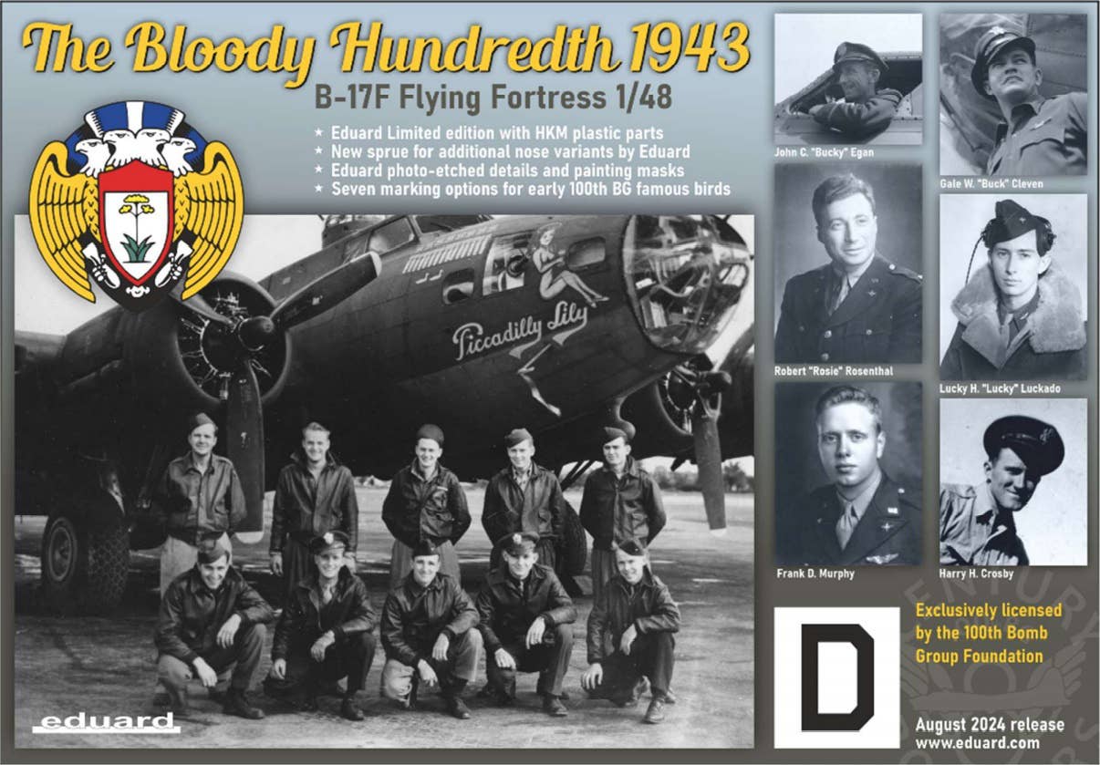 This deluxe set from Eduard features the B-17F from "The Bloody Hundredth" from 1943! The injection parts of the kit are made by HK Model; two types of original transparent plastic B-17F late-model nose parts are included. You'll also get decals for seven different U.S. Army Air Force 100th Bombardment aircraft; resin parts for the exhaust pipe and turbocharger are also included. Photo-etched parts and painting mask stickers round out the set. Order it for your own collection today!