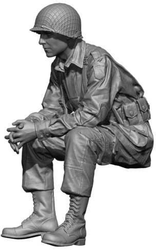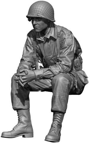 H3 Models brings us an unpainted, unassembled resin figure kit of a U.S. paratrooper from World War II sitting on a ration box or vehicle, taking a short breather. It can also be used as an airborne soldier sitting on a 6x6 cargo truck or jeep. The M42 paratrooper uniform worn by U.S. paratroopers in World War II has been carefully recreated, complete with the M1 helmet, M1 Garand bandolier, and water bottle. This figure is 3D printed. Order yours today!