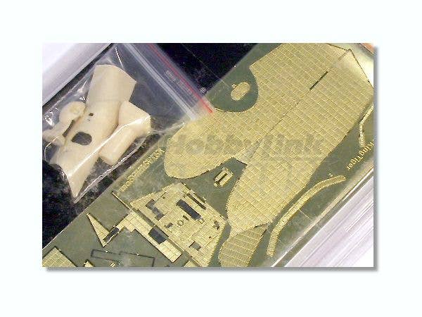 A photo-etched metal zimmerit set for Tamiya's 1/48-scale Tiger II ("Porsche turret"). Includes resin mantlet, forward turret face, and glacis ball gun mount.