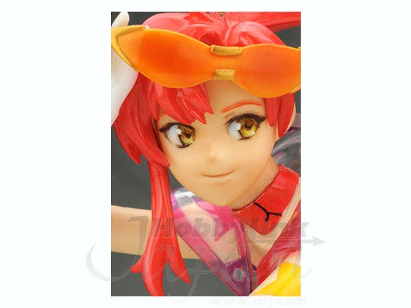 It's super-sexy "space look" Yoko, smiling slightly and removing her goggles, mounted on her Gunbee hoverbike! Sculpted by Polygonia, this figure of Yoko is absolutely stunning, from the natural pose to the sweep of her red ponytail to the clear rain slicker she wears. Decals are included to trick out the Gunbee as shown. An oval stand is included, to show Yoko and her ride off wherever you like. The display is about 19cm tall to the top of Yoko's hair-chopstick, and about 19cm long. This fast lady won't last long--hurry and make her yours! Please note that the photos shown are of a prototype; the production version may vary. Also, figures such as this are mass produced and as a result some inconsistencies in finish and painting may occur; these are not considered manufacturer's defects. If you absolutely must have perfection, prepare to do some touch-up work on your own.