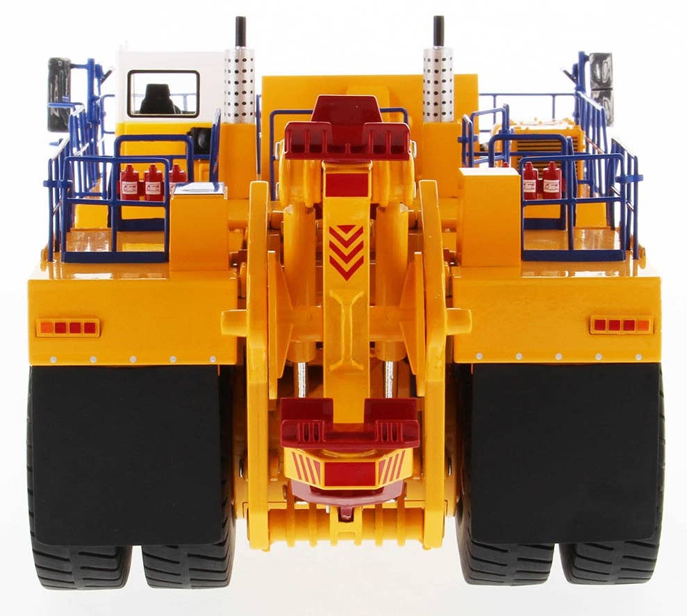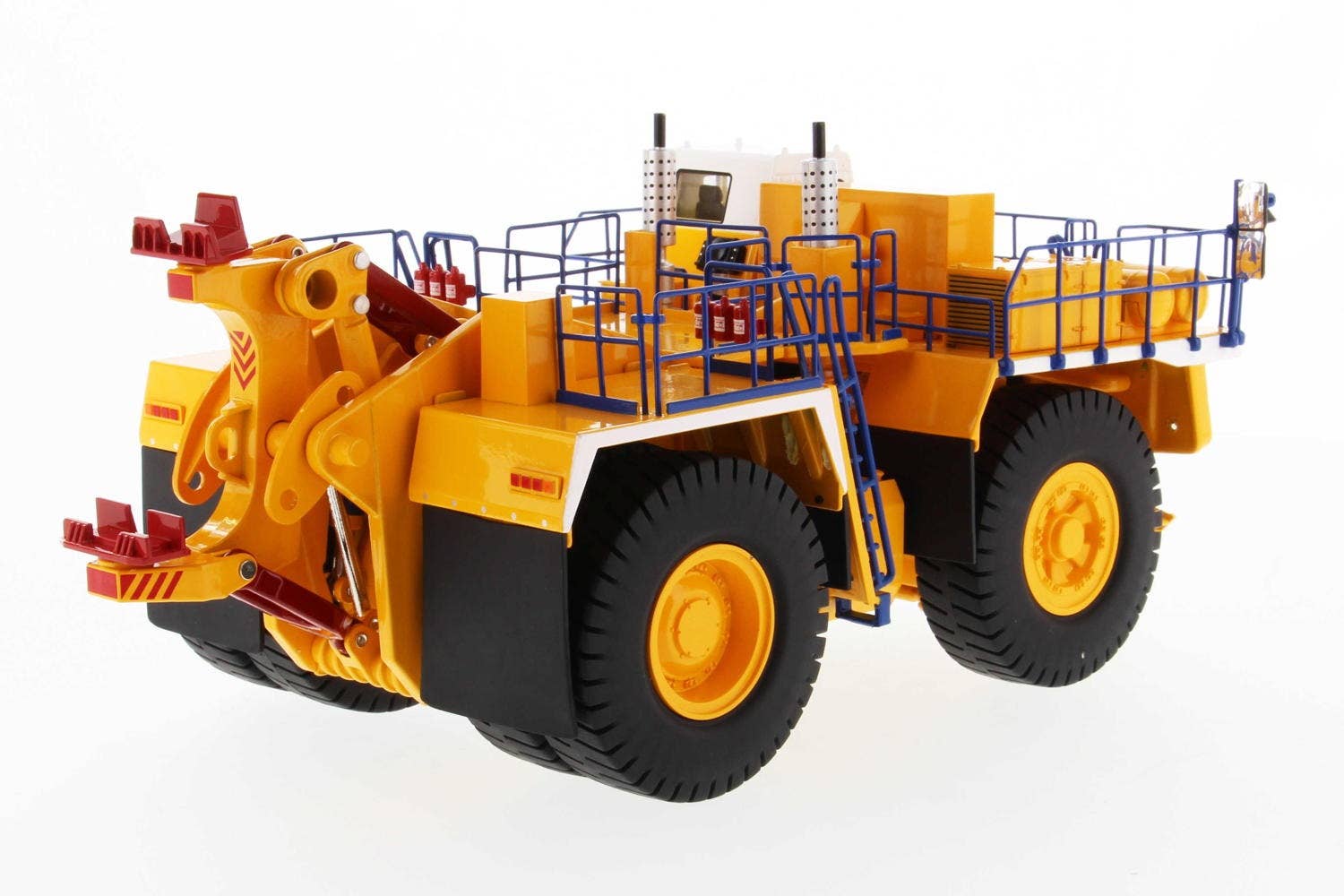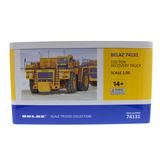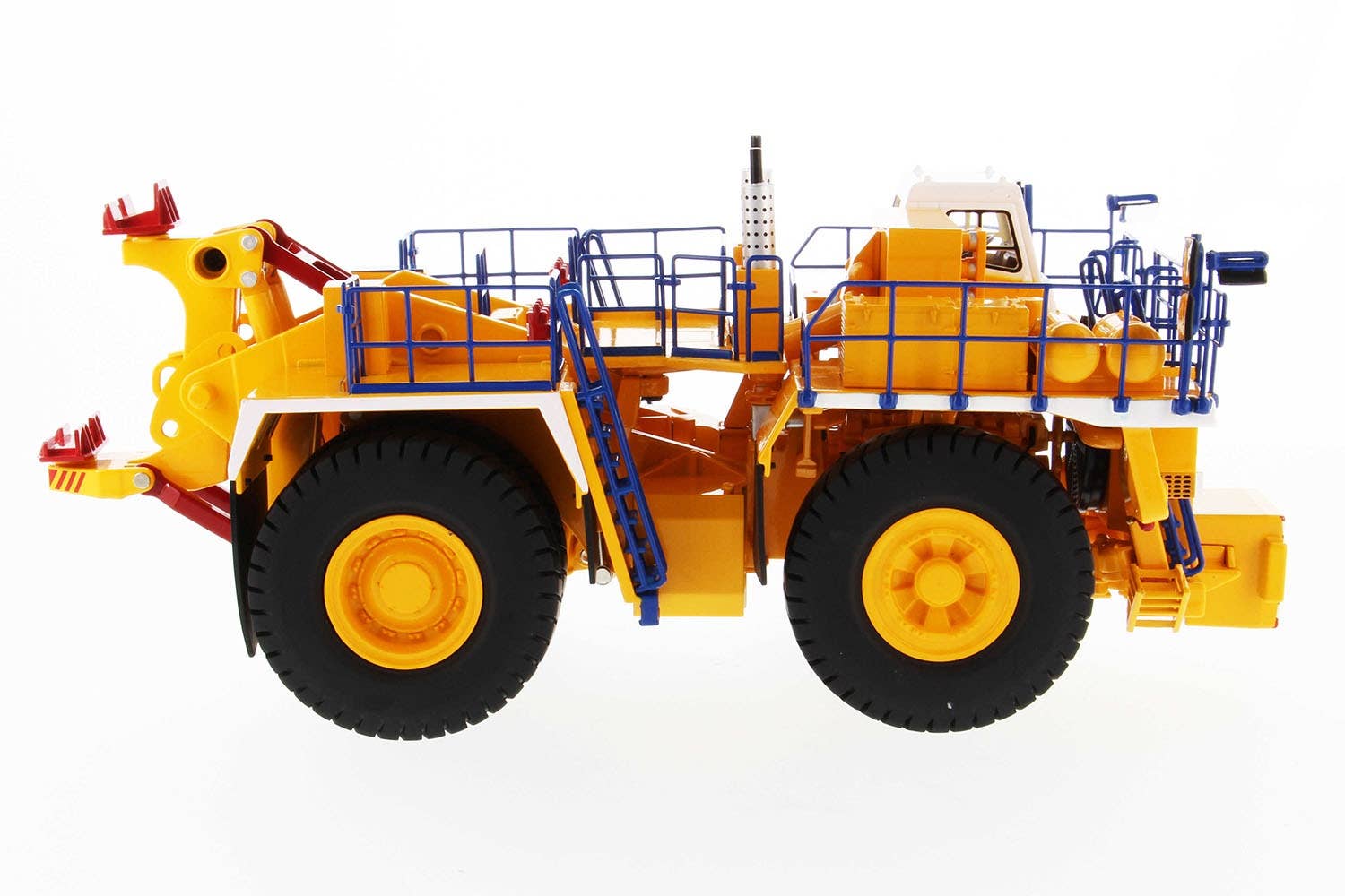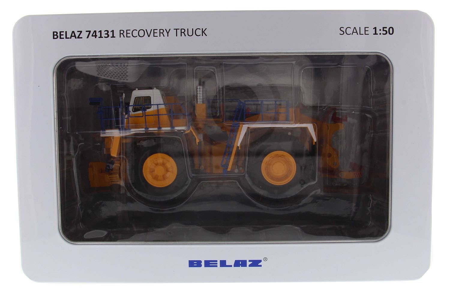 This completed die-cast display model reproduces the BelAZ 74131 recovery mine truck in 1/50 scale. The counterweight on the front and the powerful arm mounted on the rear are reproduced with great accuracy; the rear arm can be moved, too. Stairs leading to the operator's cabin and the handrails are also delicately modeled. The front wheels can be steered, and the tires feature a realistic tread pattern. The operator cabin interior is also carefully reproduced, and is clearly visible through the windows. Add this attractive and stylish piece of equipment to your collection today!