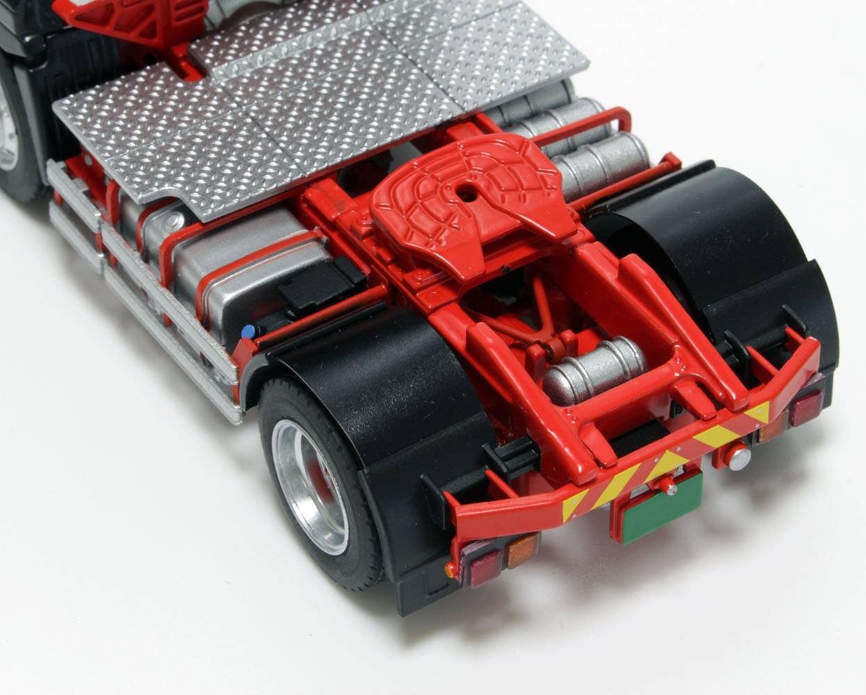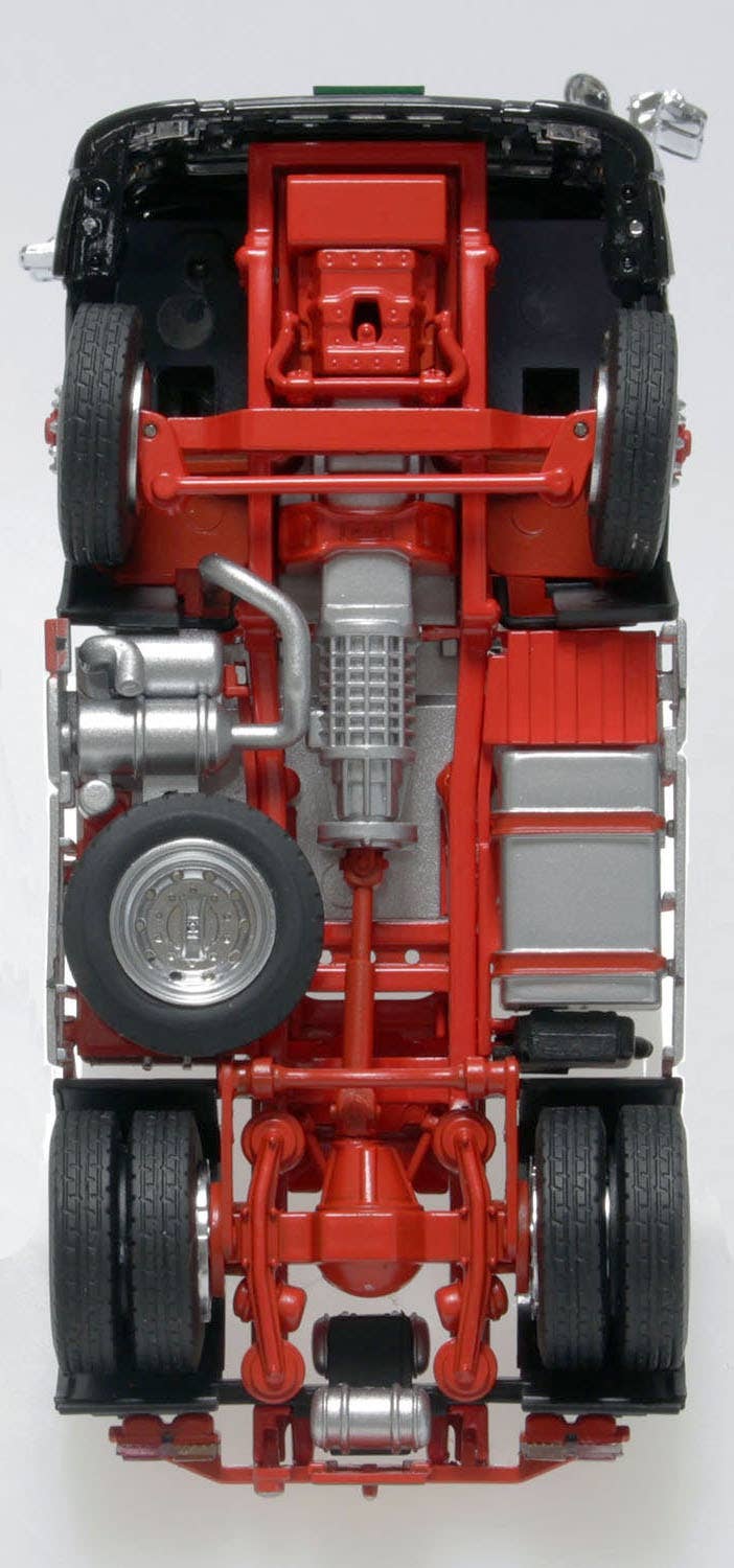 This completed die-cast display model of a Hino Profia SH 4x2 high-roof in black is a collaboration between Platz and Ken Kraft, a company with a lot of experience in construction machinery! The chassis structure is highly detailed, down to the drive system and coupler, and the coupler can be moved back and forth. The front wheels are also steerable. The rear of the cab features detailed wiring, and the interior is fully recreated with the instrument panel, sun visor, and two-colored seats. Combine it with various trailers to make your own custom display -- order this powerful machine today!