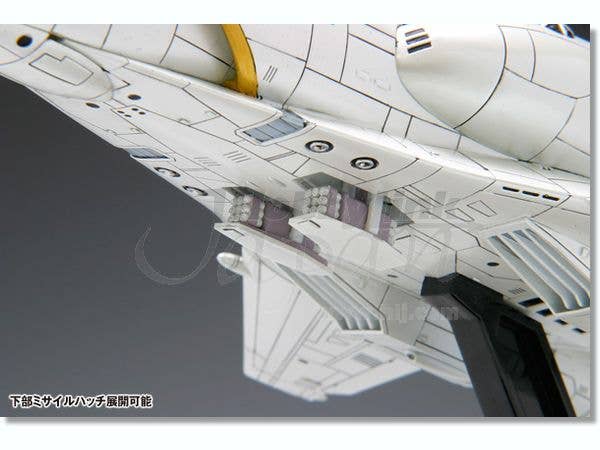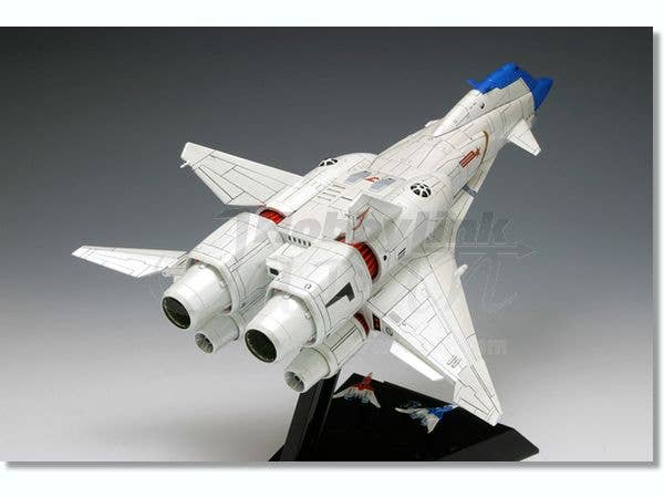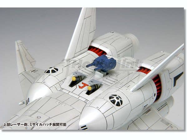 This high-quality, 23cm-long completed model features movable wingtips, deployable landing gear, missile hatches on the bottom that can be pulled out, openable hatches on the top to reveal its laser cannon and missiles, and a hanger bay hatch that can be opened to store the included same-scale Fighter-1, Fighter-2, and Gareon. A custom display stand is also provided. Made of ABS, polycarbonate, and PVC plastic, this is a dream come true for "Crusher Joe" fans, or anyone who digs carefully planned "what-if" spacecraft--don't miss out!