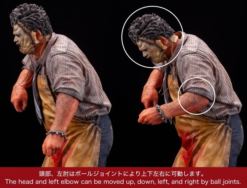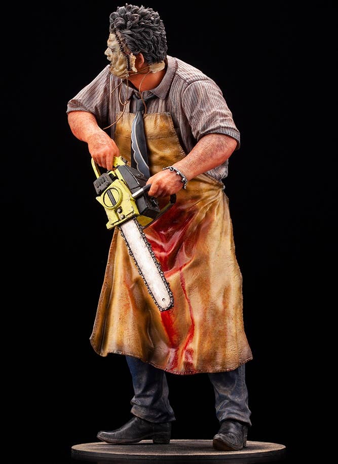 Leatherface from "The Texas Chainsaw Massacre (1974)" has joined the ARTFX statue lineup from Kotobukiya, which they state to be the definitive version of the character! The head and elbow of the figure are movable, and the position of the chainsaw can be adjusted to compliment the 'personality' the user chooses to display. You can recreate Leatherface in his eerie, expressionless mask, or even display him as an obedient man who may express fear from time to time. The mask, which has eyelashes implanted as shown in the movie, is made of soft resin and is ultra-thin and semi-transparent to match the scale of the actual prop. He comes with a 15cm diameter steel base designed to look like the on-screen text and still photo from the beginning of the movie. The statue can be placed freely on the base with magnets that are inside of the feet. Order this incredible collectors statue today!
