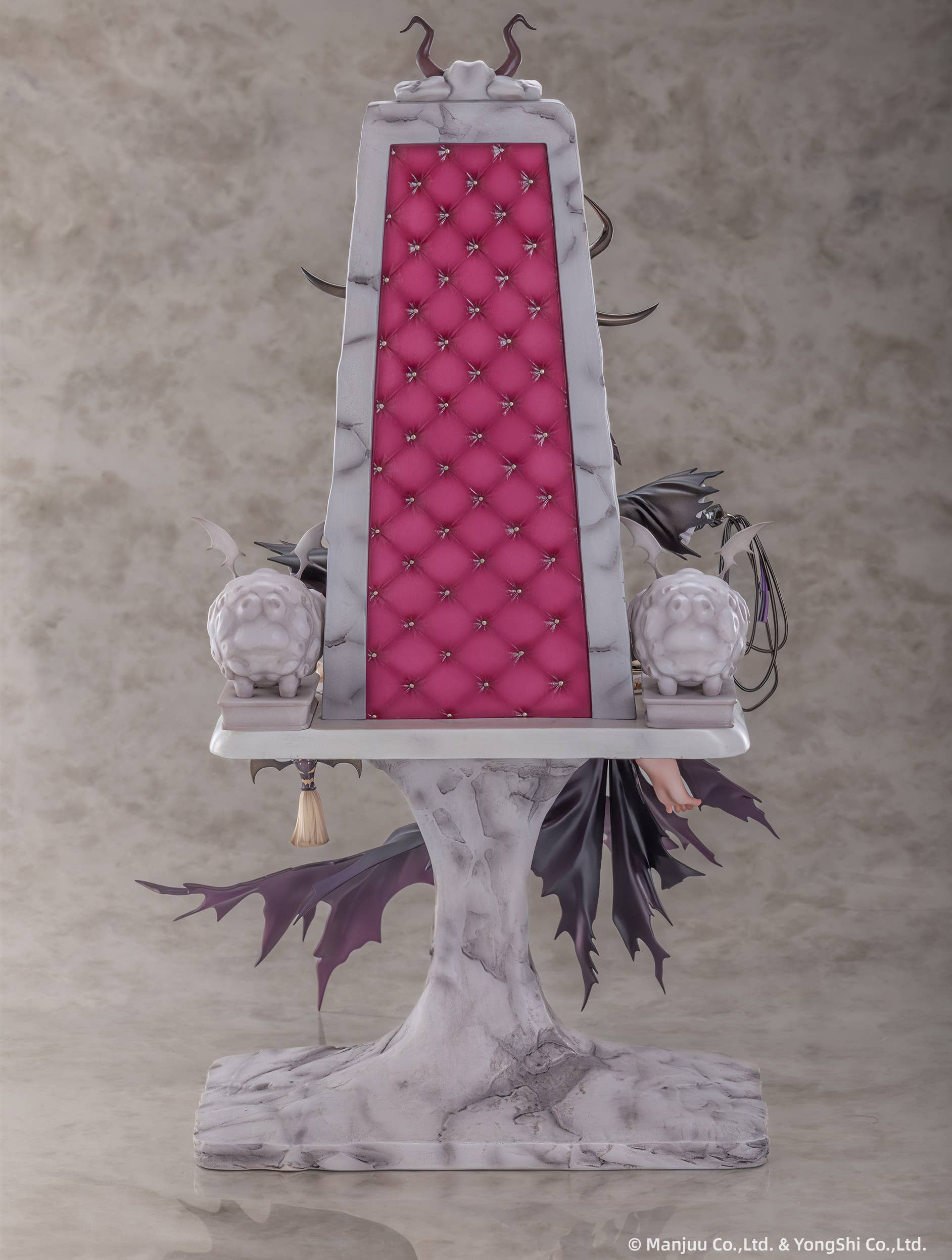 Owari from "Azur Lane" gets a new figure from AniGame that shows off her "My WIsh is For Love" skin! She's sitting on an ornate throne, enjoying her status as the lord of the demons; her long tattered leggings sweep down to the base of the throne, and she regards you with a smile that's quite different from her typical somewhat vapid expression! This figure is loaded with details, like the luxuriously tufted backrest of the throne, the ornaments Owari wears at the ends of her braids and on her horns, and the bat-winged sheep statues that form the throne's armrests. Order her for your own collection today, Commander -- if you dare!