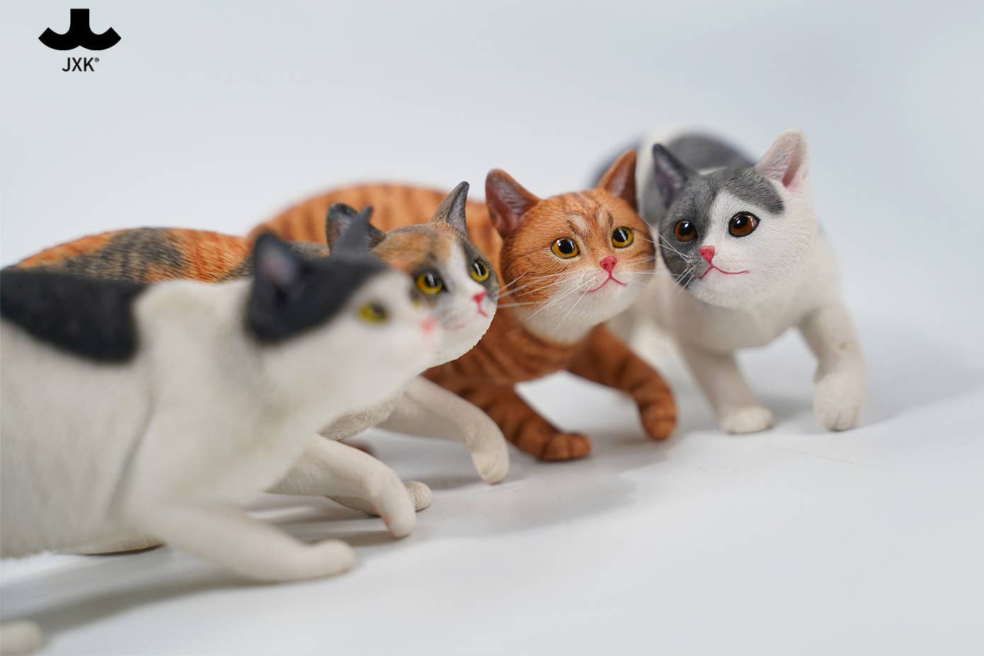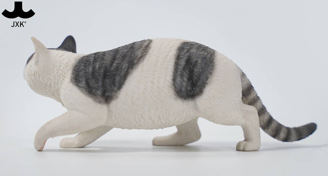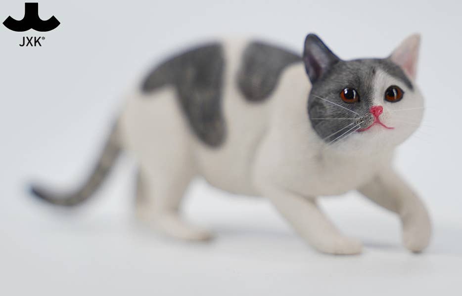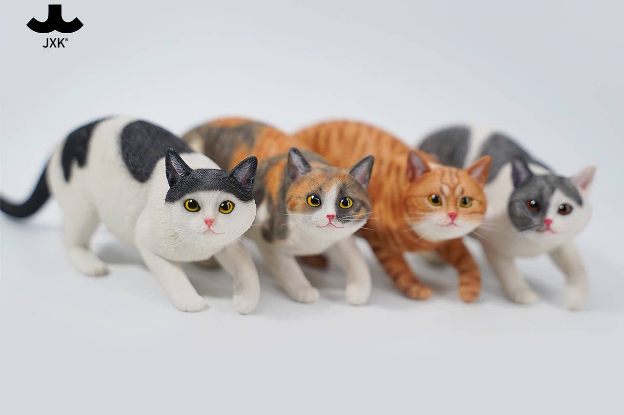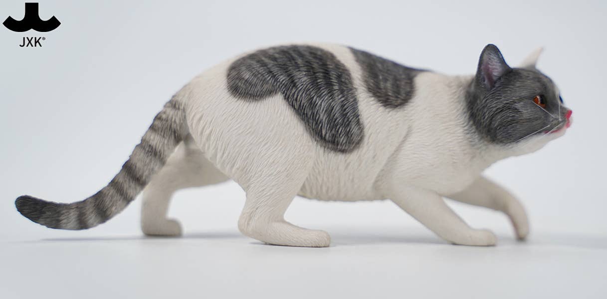 JXK Studio brings us a new 1/6-scale cat figure! This one is engaging in the sneaky, crouching walk that may mean it's stalking an unsuspecting bird, or maybe your foot is sticking out from under the covers and the cat has decided that's its natural prey. It comes in various realistic cat colors, and each one comes with a collar, too. Your 1/6-scale dolls or figures will love it, and so will you -- order yours today!