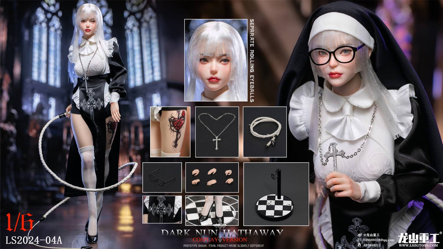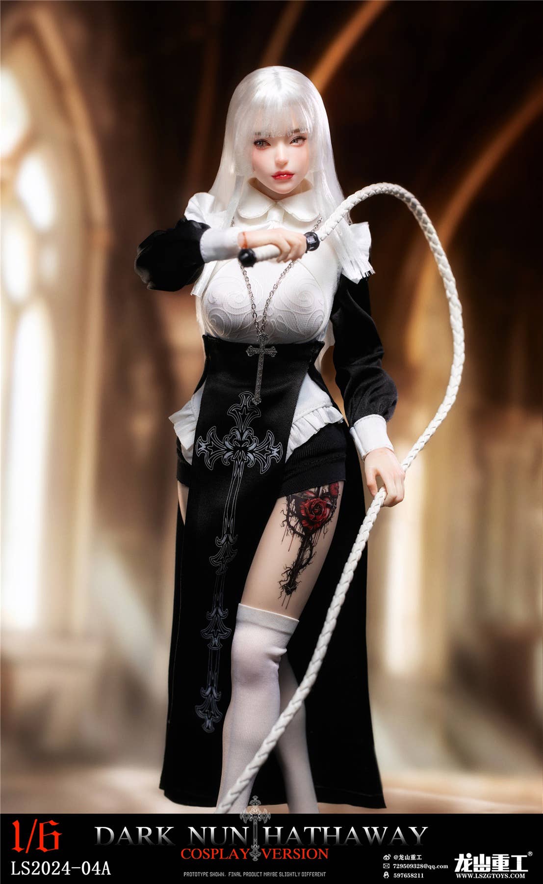 Dark Nun Hathaway is an original character from Long Shan -- she's a sexy, cool sister who wields the whip of love! This incredible 1/6-scale action figure is incredibly posable for maximum action, and she comes with an outstanding costume set and great accessories. She'll be an amazing addition to your collection -- place your order today!