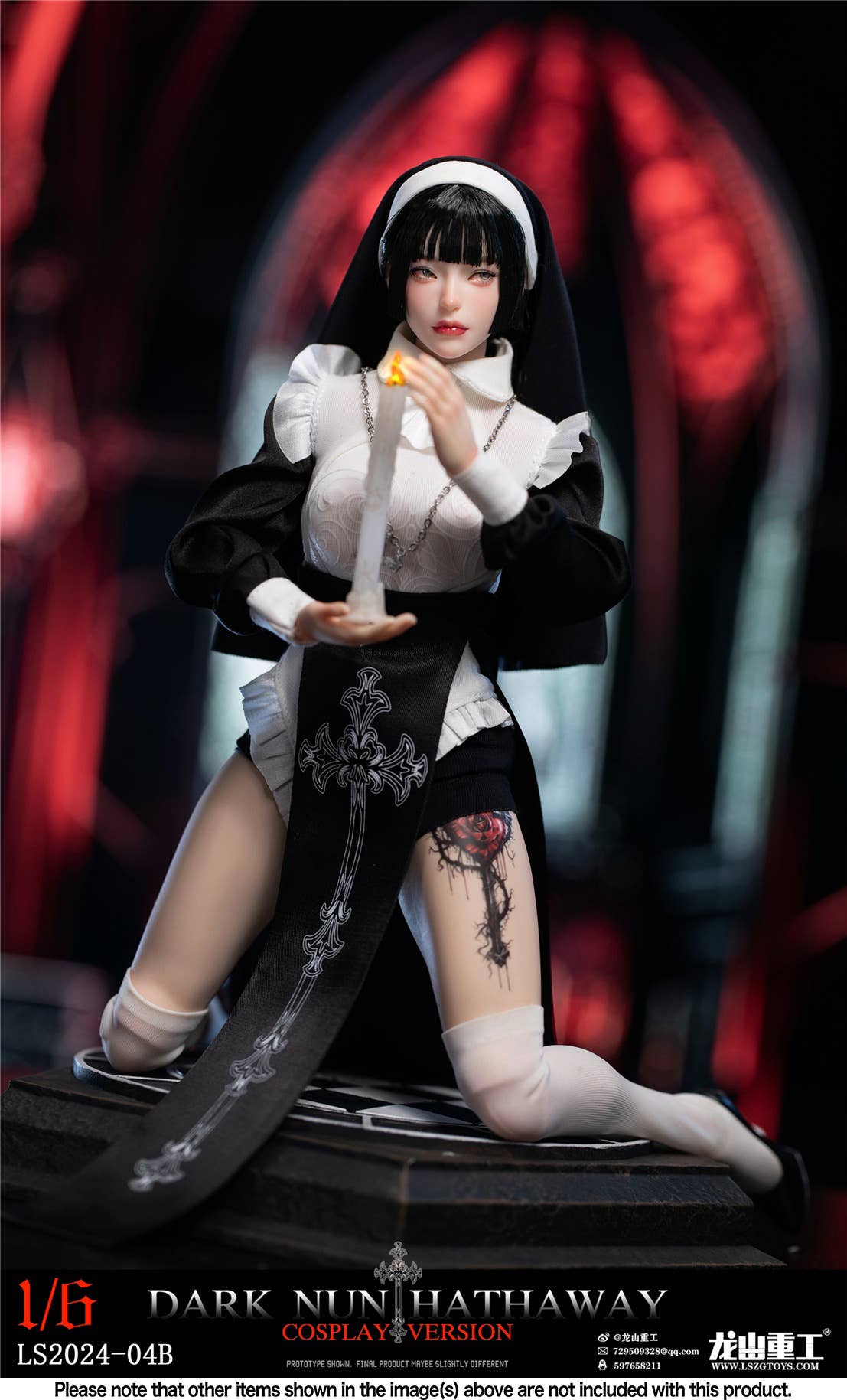 Dark Nun Hathaway is an original character from Long Shan -- she's a sexy, cool sister who wields the whip of love! This incredible 1/6-scale action figure is incredibly posable for maximum action, and she comes with an outstanding costume set and great accessories. She'll be an amazing addition to your collection -- place your order today!