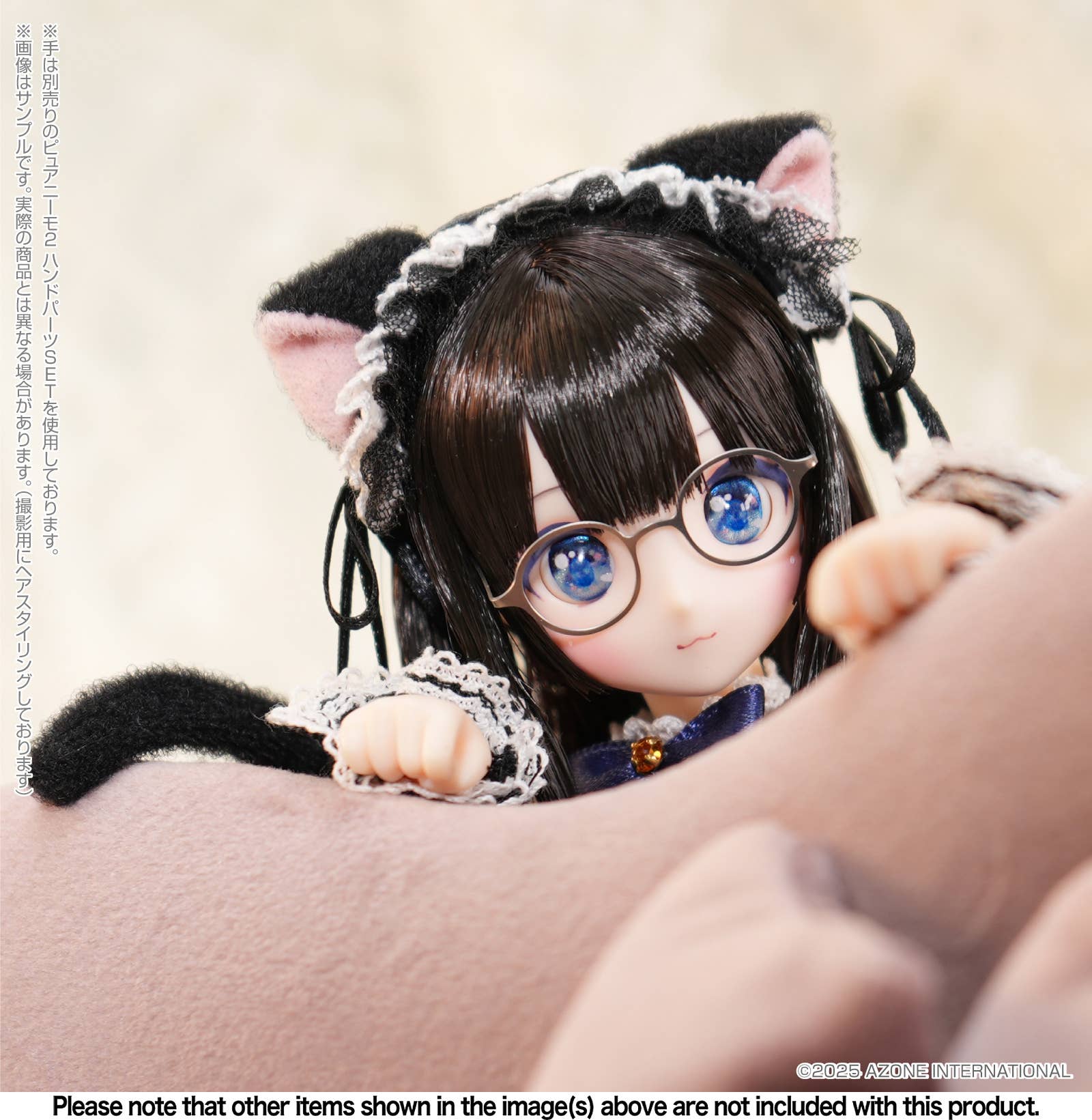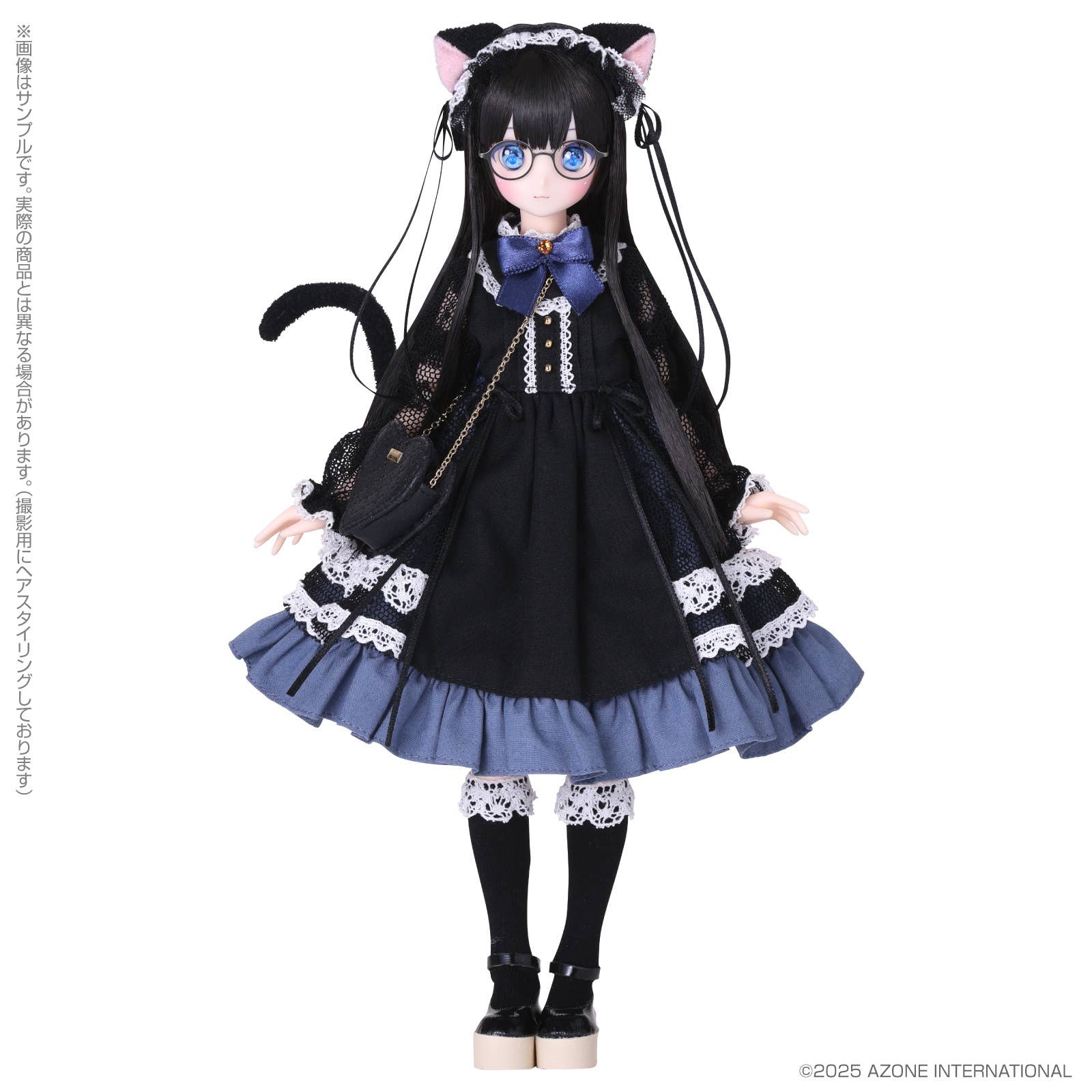 Shiho Asahina is the first character in Azone's new series "A Gift from M.K."! Mary Knight will coordinate Shiho's entire look; she's dressed in black and blue, with her sparkling sapphire blue eyes made with metallic paint! Her blue eye makeup draws further attention to her gorgeous eyes, and she has a catlike mouth. Her metal glasses are silver-colored for the first time, and her long, straight black hair is worn in a heavy princess cut, making it a perfect match for her adorable outfit! She's built on a Pure Neemo 2 Emotion body for superior posability, too. Invite Shiho into your own doll family today!