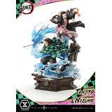 Tanjiro Kamado and Nezuko Kamado from "Demon Slayer: Kimetsu no Yaiba" are now part of the "Concept Masterline" display figure lineup from Prime 1 Studio! The brother becomes a demon slayer to turn his sister back into a human; the sister protects humans even after becoming a demon. The two fight together and support one another throughout the series, and now they've been recreated in exacting detail at 1/6 scale! Nezuko is airborne, while Tanjiro is firmly standing on the ground; the undulating Dragon of Living Cycles curves around them in a dynamic expression of a tense moment, with the vertical positioning of the figures creating a sense of height and depth. The sculpting and coloring of each part combines the impression of the anime with a high-level 3D texture. The facial features of both characters have been meticulously designed to convey their dignified presence and the softness equivalent to their youth. The iconic patterns on their fluttering haori and kimono are meticulously sculpted and painted, too. The beautifully aqua-hued Water Breathing effects highlight the realism of the wood and steel base. This item is serially numbered. Order yours today!