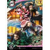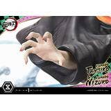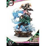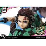 Tanjiro Kamado and Nezuko Kamado from "Demon Slayer: Kimetsu no Yaiba" are now part of the "Concept Masterline" display figure lineup from Prime 1 Studio! The brother becomes a demon slayer to turn his sister back into a human; the sister protects humans even after becoming a demon. The two fight together and support one another throughout the series, and now they've been recreated in exacting detail at 1/6 scale! Nezuko is airborne, while Tanjiro is firmly standing on the ground; the undulating Dragon of Living Cycles curves around them in a dynamic expression of a tense moment, with the vertical positioning of the figures creating a sense of height and depth. The sculpting and coloring of each part combines the impression of the anime with a high-level 3D texture. The facial features of both characters have been meticulously designed to convey their dignified presence and the softness equivalent to their youth. The iconic patterns on their fluttering haori and kimono are meticulously sculpted and painted, too. You can feel the craftsmanship in every element, from the beautifully aqua-hued Water Breathing effects to the realistic solidity of the base.