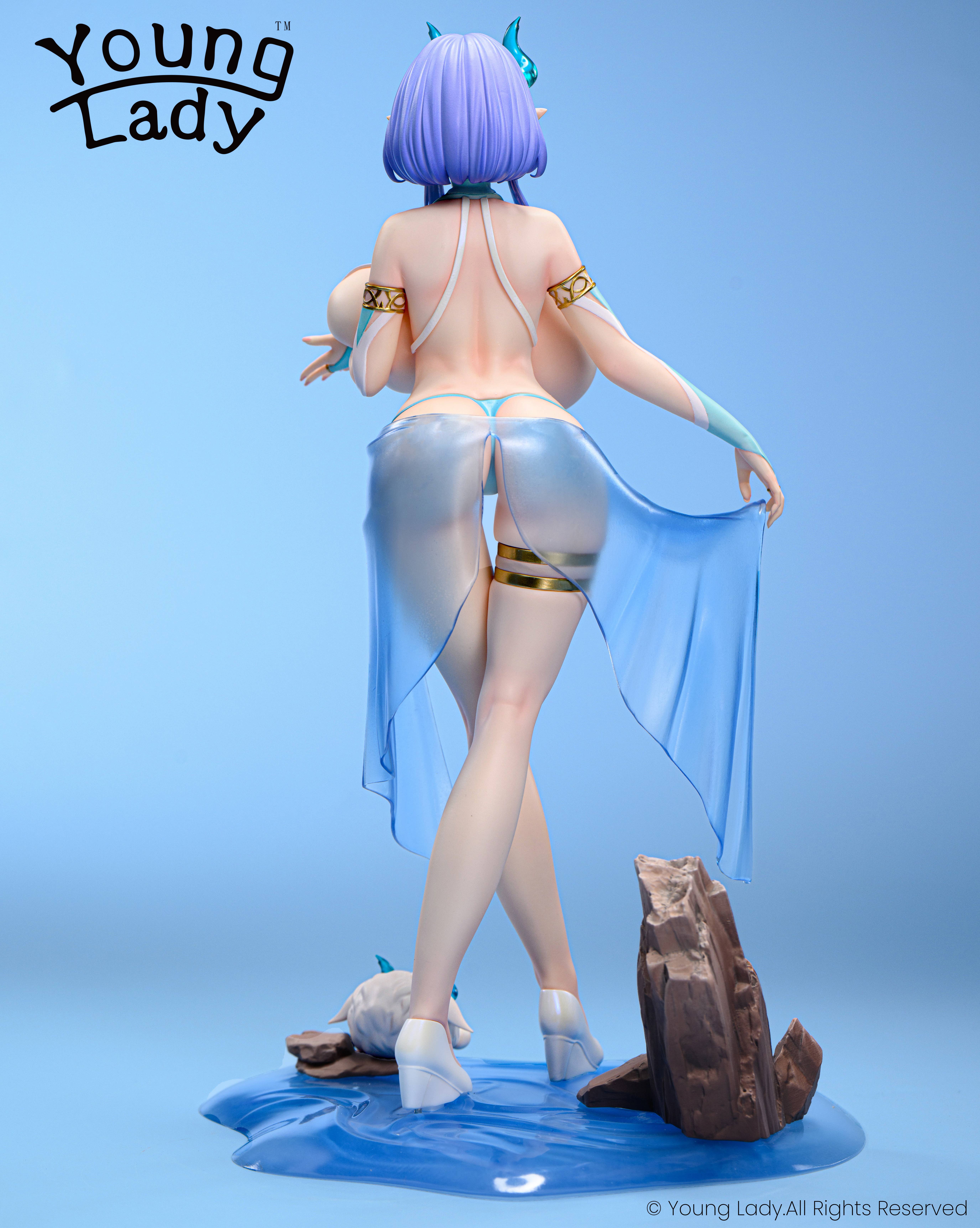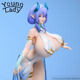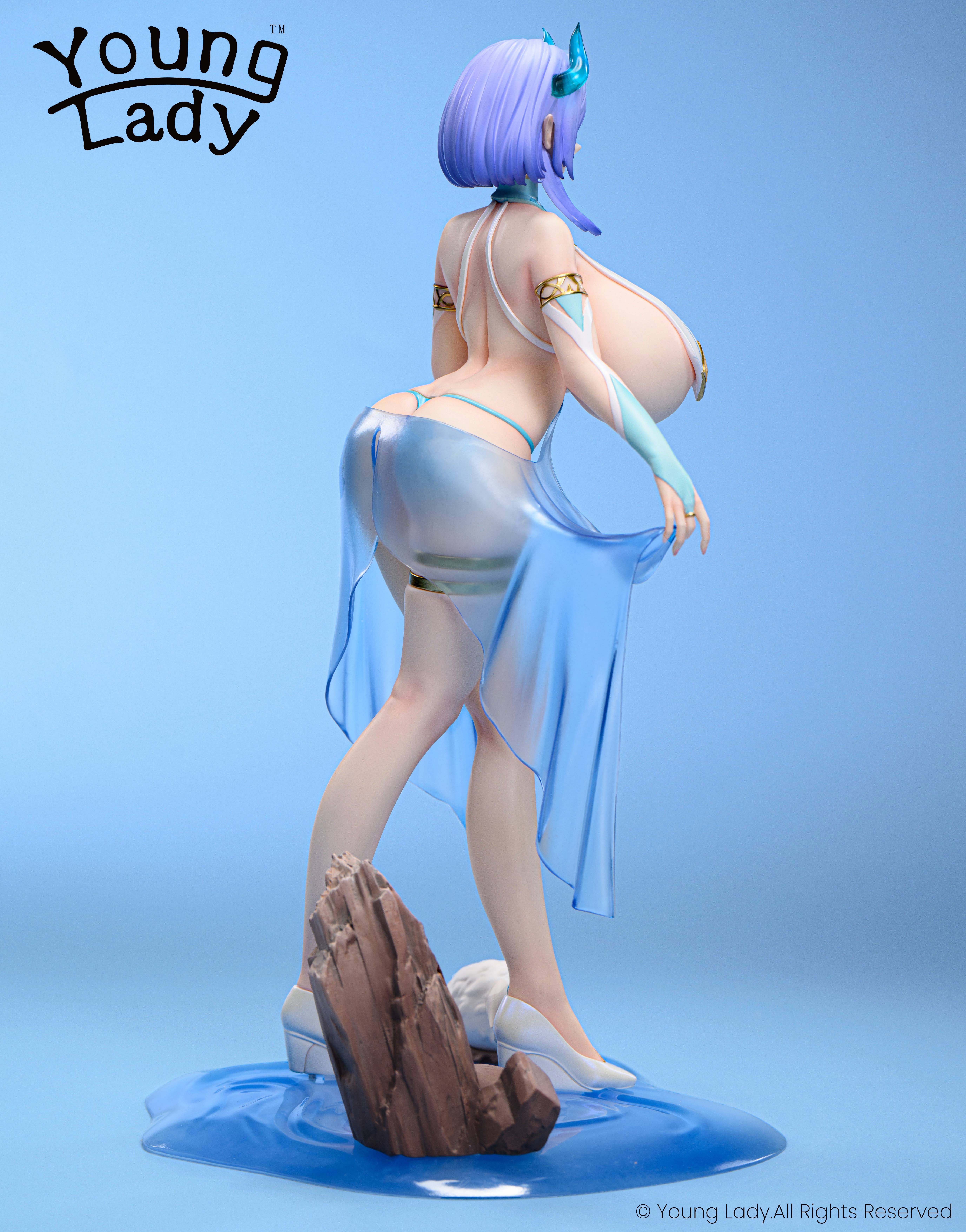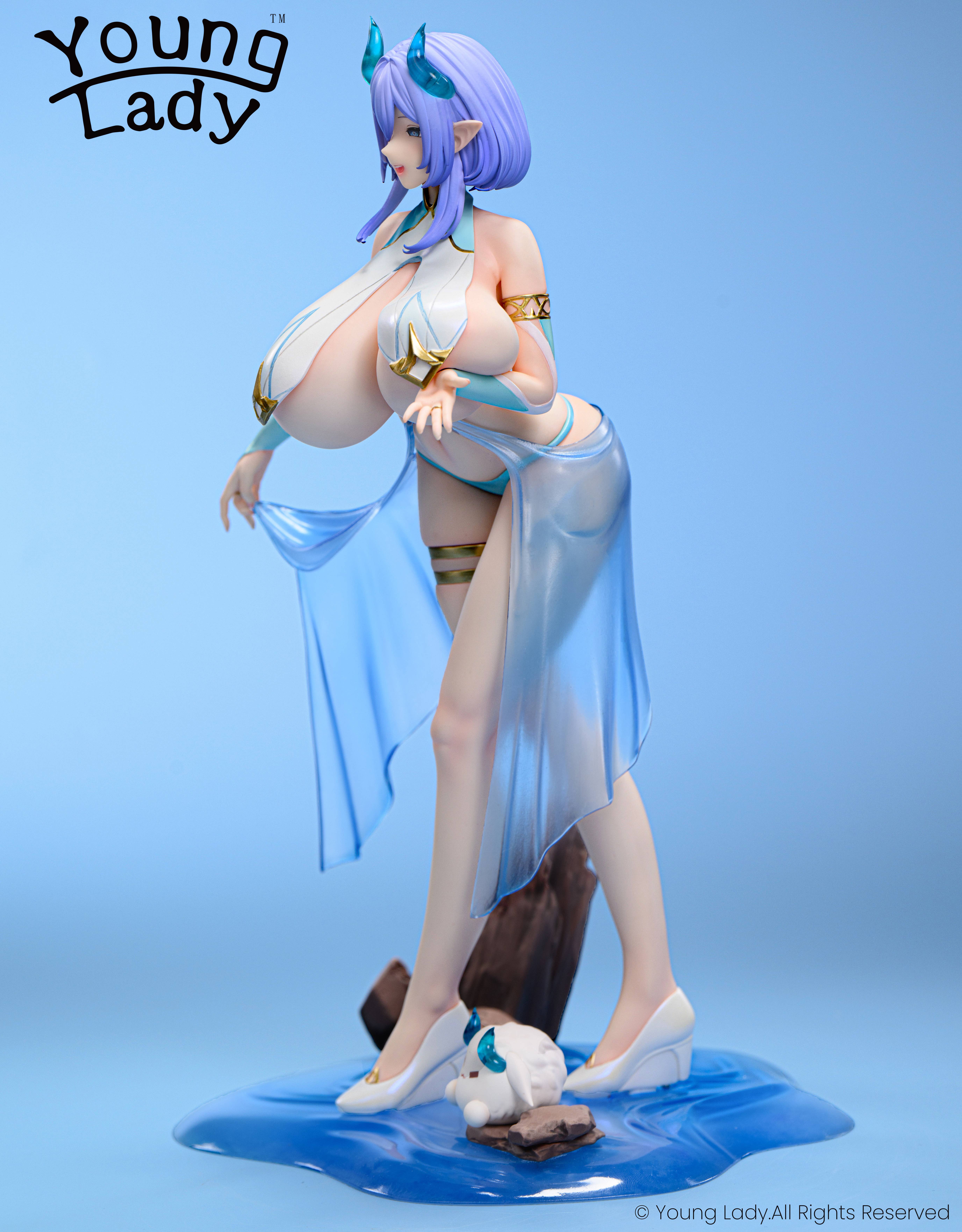 Dragon Girl Satsuki, an original character from the popular illustrator Cica Ma, is now available as a figure from YoungLady! Her outfit, in white with gleaming golden ornaments and accents of blue, does little to conceal her lush figure; her horns are made of a translucent blue material, as is the drape she wears around her hips. She's stepping across a watery base, and a cute little dragon-like creature is perched nearby too. Order her for your own collection today!