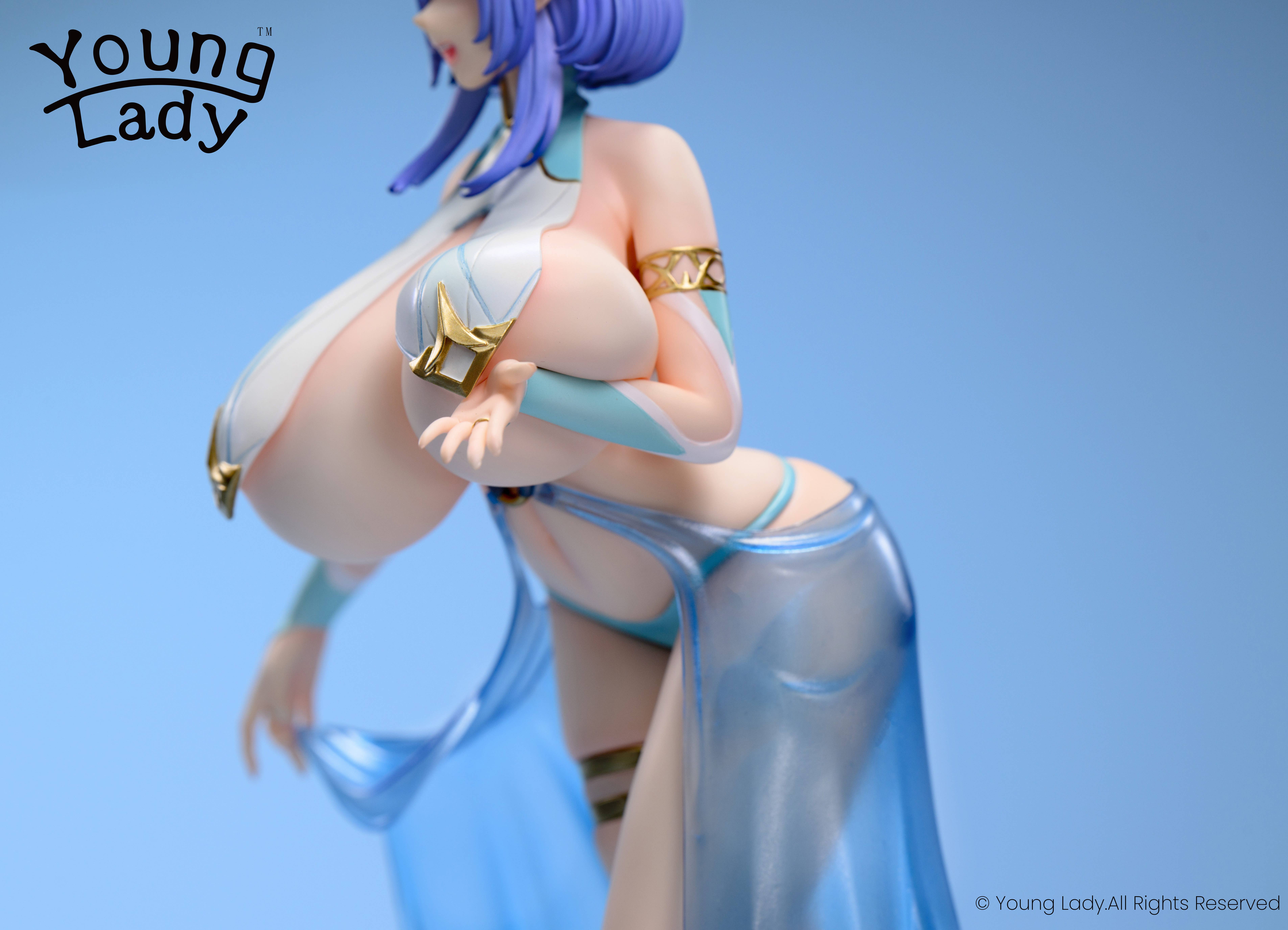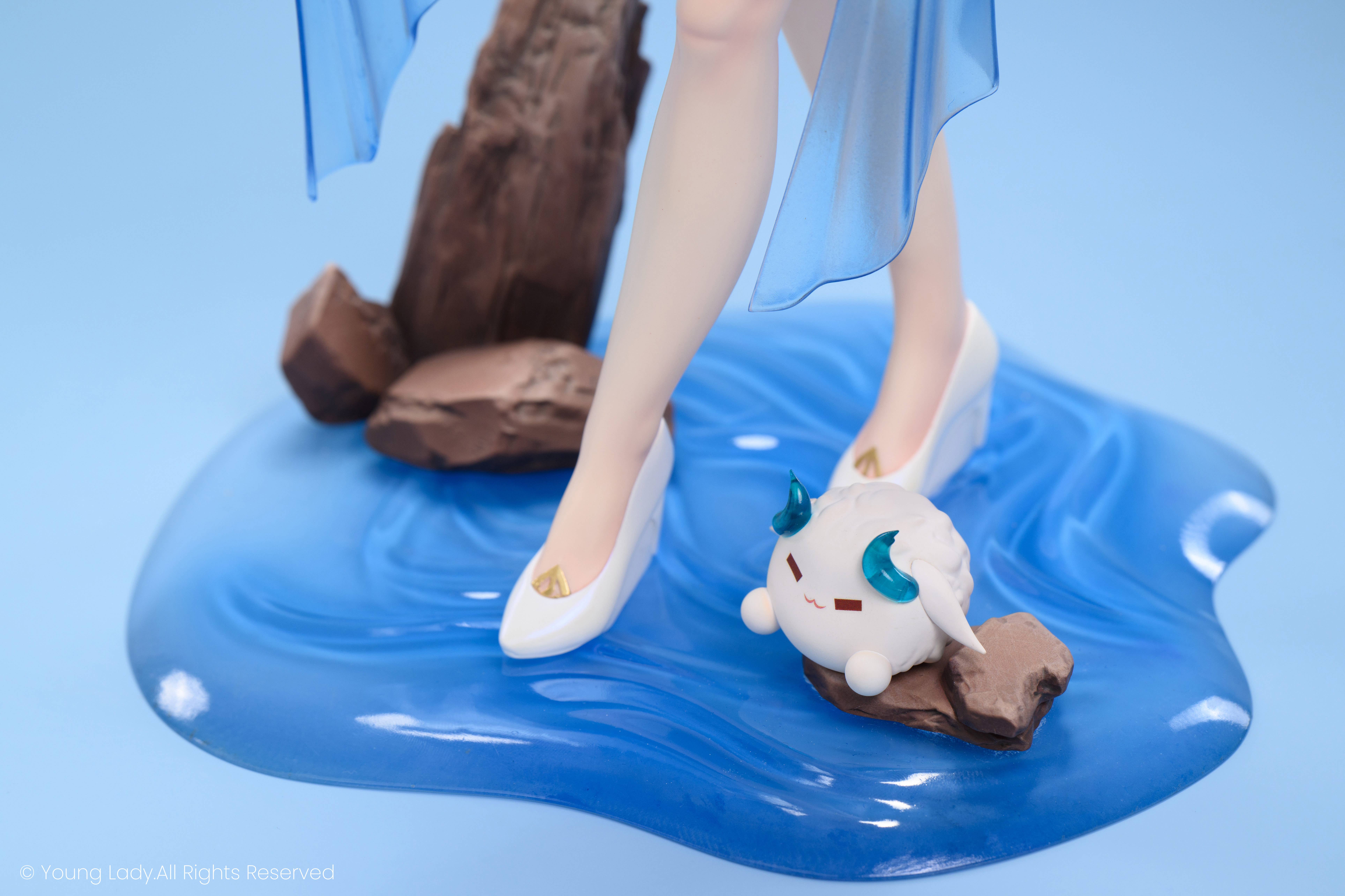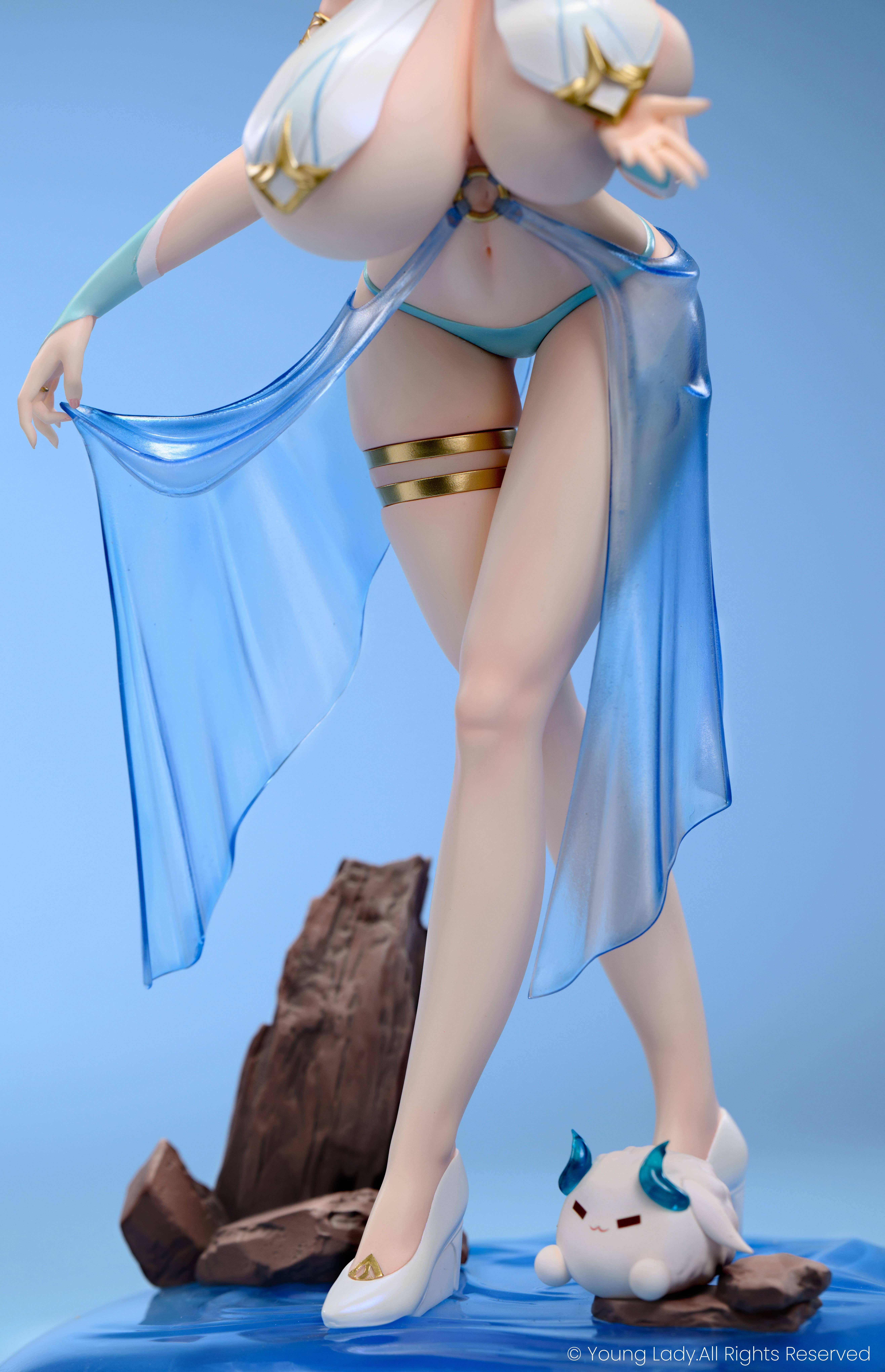 Dragon Girl Satsuki, an original character from the popular illustrator Cica Ma, is now available as a figure from YoungLady! Her outfit, in white with gleaming golden ornaments and accents of blue, does little to conceal her lush figure; her horns are made of a translucent blue material, as is the drape she wears around her hips. She's stepping across a watery base, and a cute little dragon-like creature is perched nearby too. Order her for your own collection today!