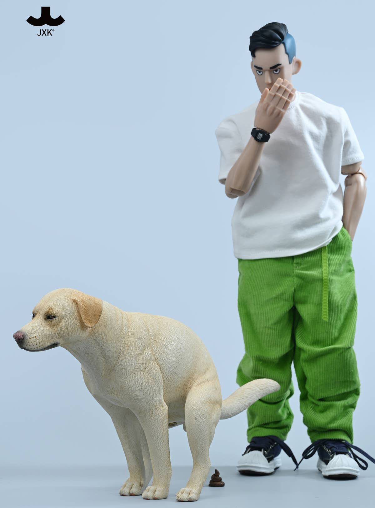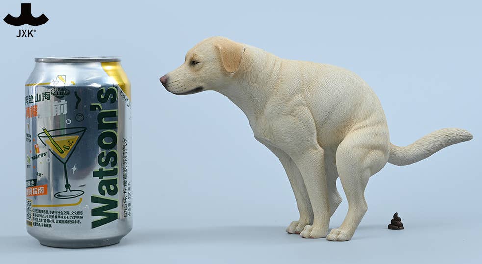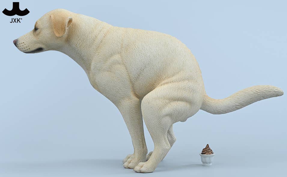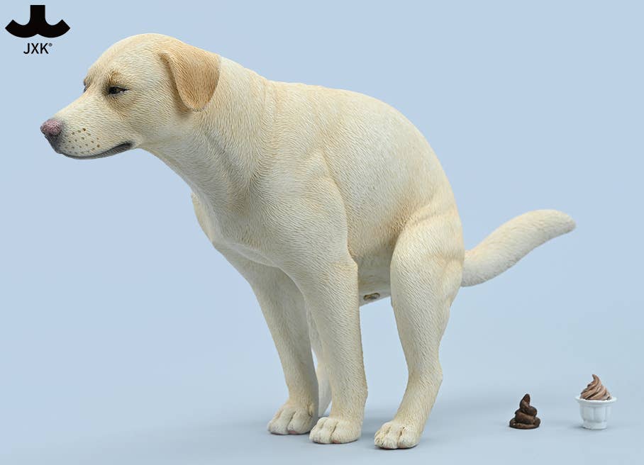 JXK Studio adds a Labrador retriever to their 1/6-scale animal figure lineup -- and this good boi is doing what all dogs need to do every now and then! A poop and a serving of ice cream are included as well. Order yours today!