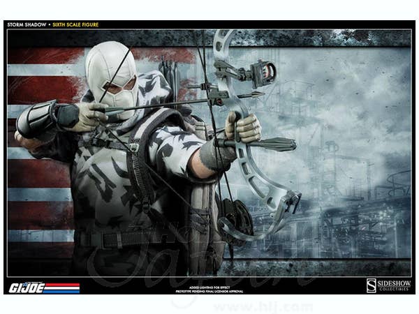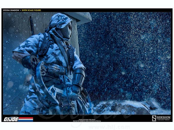 The deadly assassin, Storm Shadow is the newest member of Sideshow Collectibles COBRA Sixth Scale figure collection. Highly skilled, this silent and efficient killer wields his weapon of choice, an impressive compound bow and arrow set, along with a few other tools of his trade, including a razor sharp katana, shuriken, and a pair of ninja tonfas. Outfitted in a winter camouflage suit and assault vest, Storm Shadow carries a fully equipped pack with detailed harnesses. Whether he's aligned with the vile terrorist organization COBRA, or carrying out a special mission for an old friend, Storm Shadow is always ready to strike!