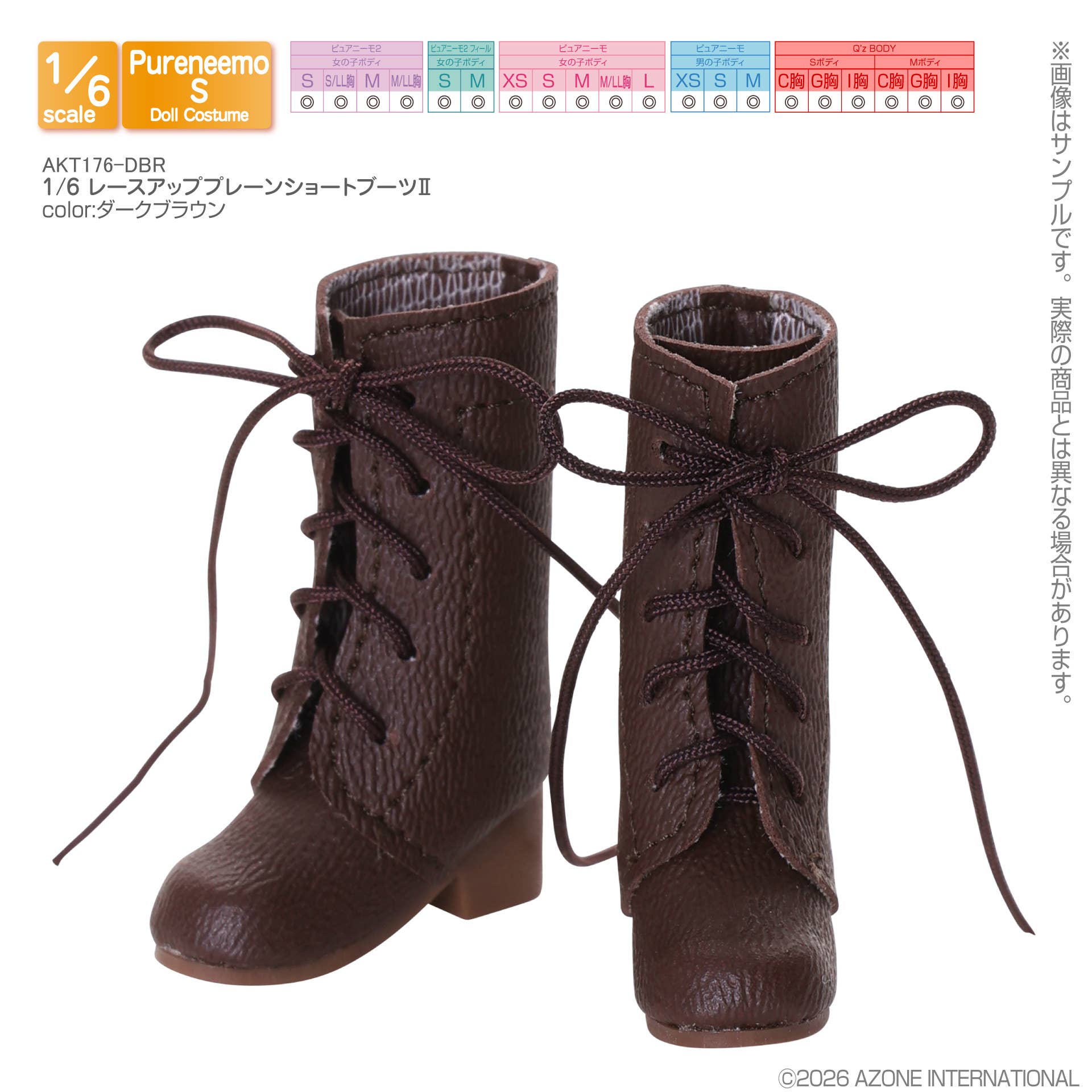 1/6 Lace-Up Plain Short Boots II Dark Brown