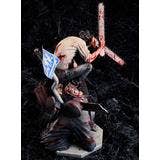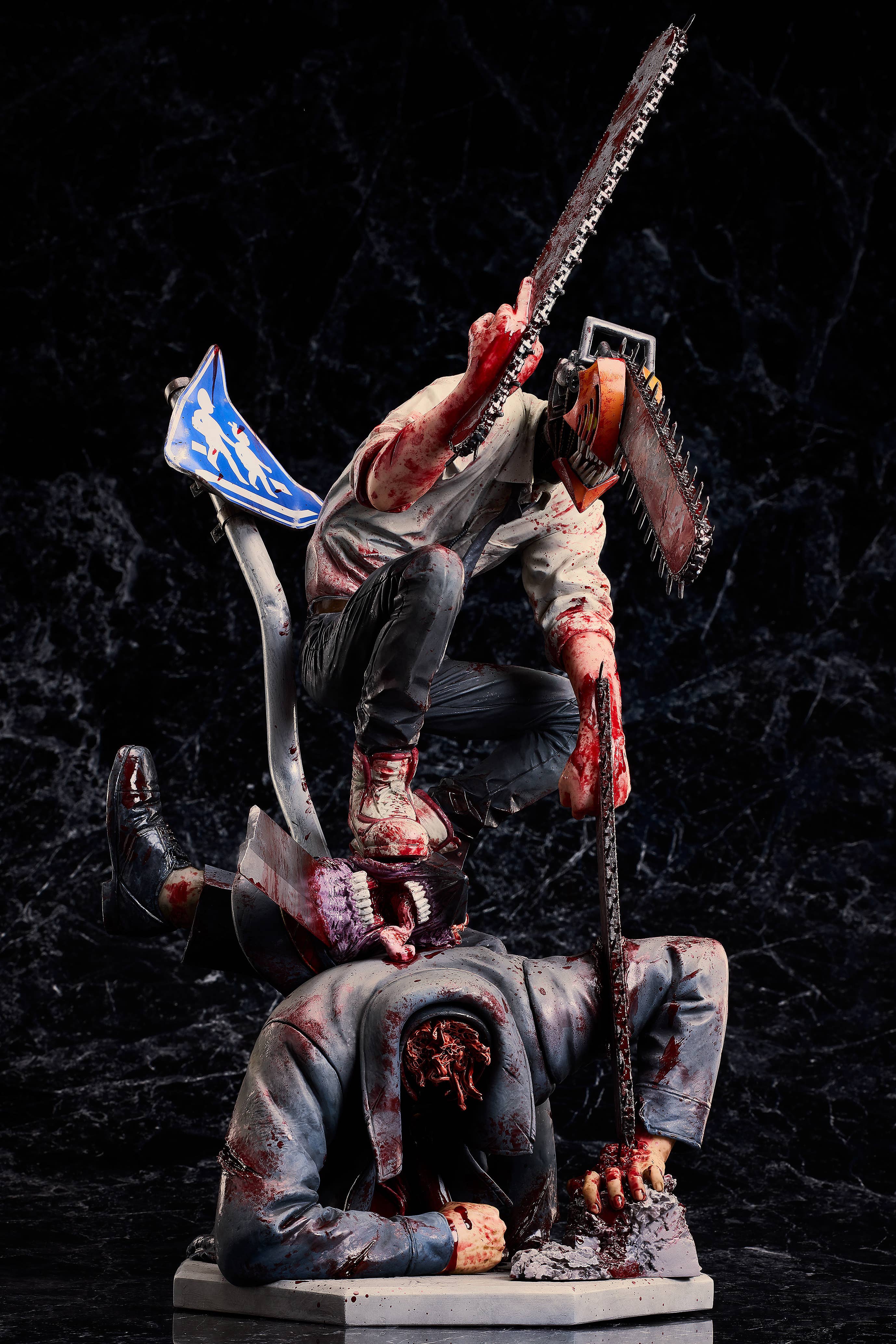 World-famous sculptor Takayuki Takeya designed and sculpted this incredible figure of Chainsaw Man from the TV anime of the same name! This display piece is loaded with details from the ground up, from Chainsaw Man's powerfully coiled body and impressive chainsaws to the brutally disassembled samurai sword demon that forms his base. The steel beam and traffic sign bring the anime's urban setting into your collection in miniature, too. Order this incredible display for your own collection today!
