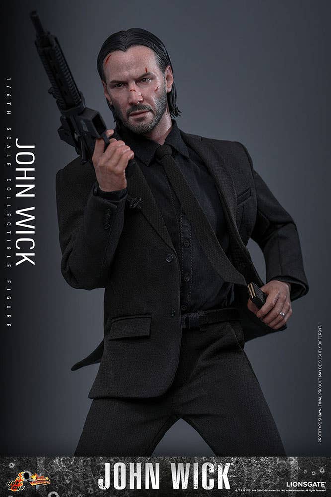 Hot Toys now brings us their amazing 1/6-scale John Wick collectible action figure! This meticulously crafted figure features a newly developed head sculpt with battle-damaged paint applications and separate rolling eyeballs, complemented by a meticulously sculpted, slicked-back hairstyle. With twelve interchangeable hands, from fists and commanding open gestures to suit-holding and gun-holding, this figure enables dynamic action and expressive poses.