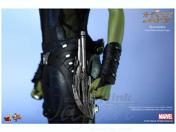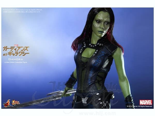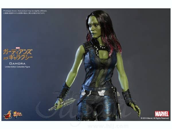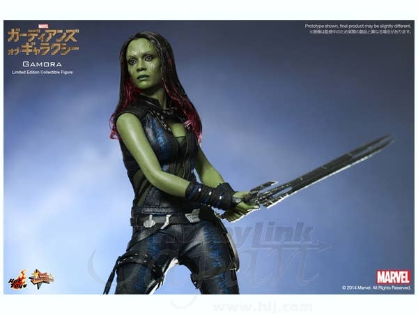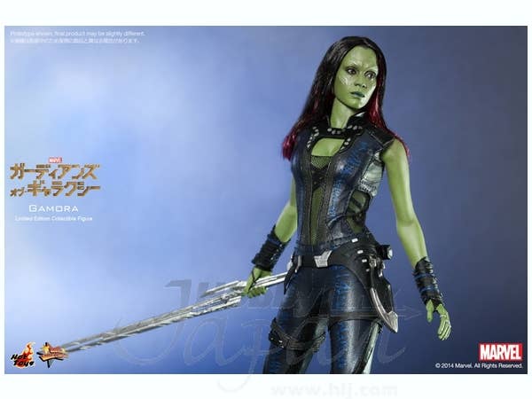The movie-accurate Gamora collectible figure is specially crafted based on the image of Zoe Saldana as Gamora in the movie, featuring the newly developed head sculpt, highly detailed costume, weapons and accessories.