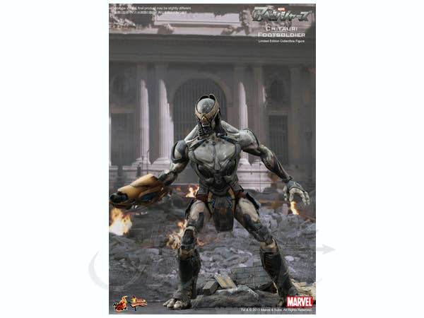 SPECIAL FEATURES: SPECIALLY CREATED BASED ON THE IMAGE OF CHITAURI FOOTSOLDIER IN THE MOVIE, FEATURING FINELY CRAFTED HEAD SCULPT AND BODY, HIGHLY-DETAILED WEAPONS, AND DIORAMA STAGE WITH MOVABLE RUBBLE PIECES.