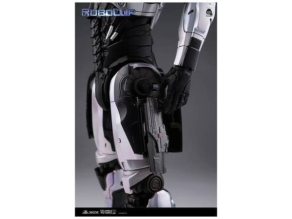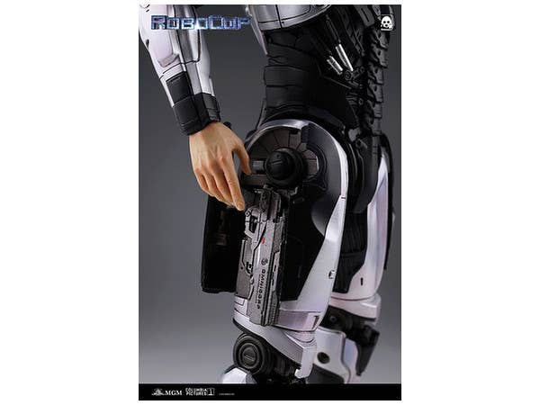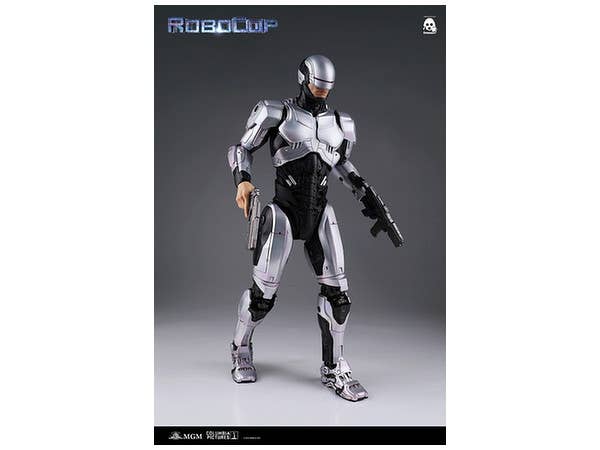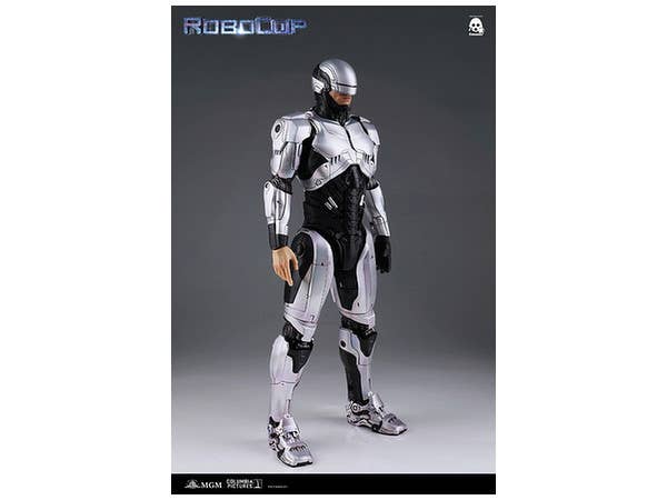 From the 2014 remake of the popular film "RoboCop" comes a 1/6th scale articulated figure of the silver-colored RoboCop seen first in the movie. The helmet features an LED light-up visor (batteries sold separately), and he also features pop-out weapons such as his stun gun on the right arm and a machine gun on the left arm. Both guns can also be manually extended. He also comes with three different interchangeable hand sets including relaxed open hands, fists and hands for holding his guns.