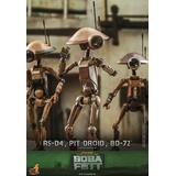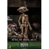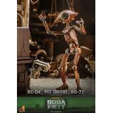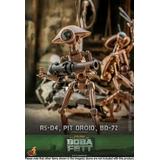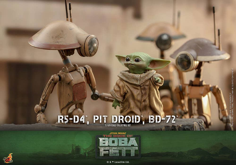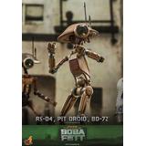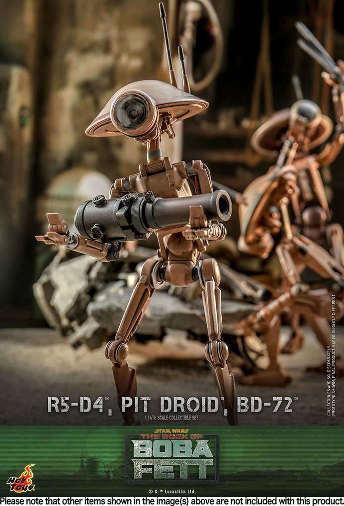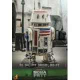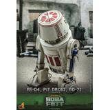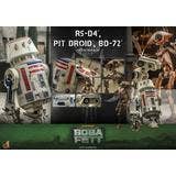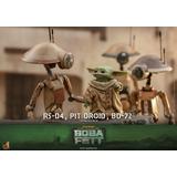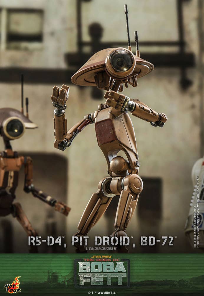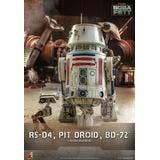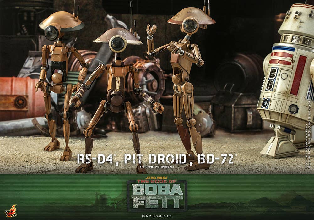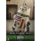 Presenting an extraordinary offering, Hot Toys introduces a 1/6-scale collectible ensemble showcasing Peli Motto's cherished companions: R5-D4, the astromech droid, a vibrant Pit Droid, and the trusty BD-72.