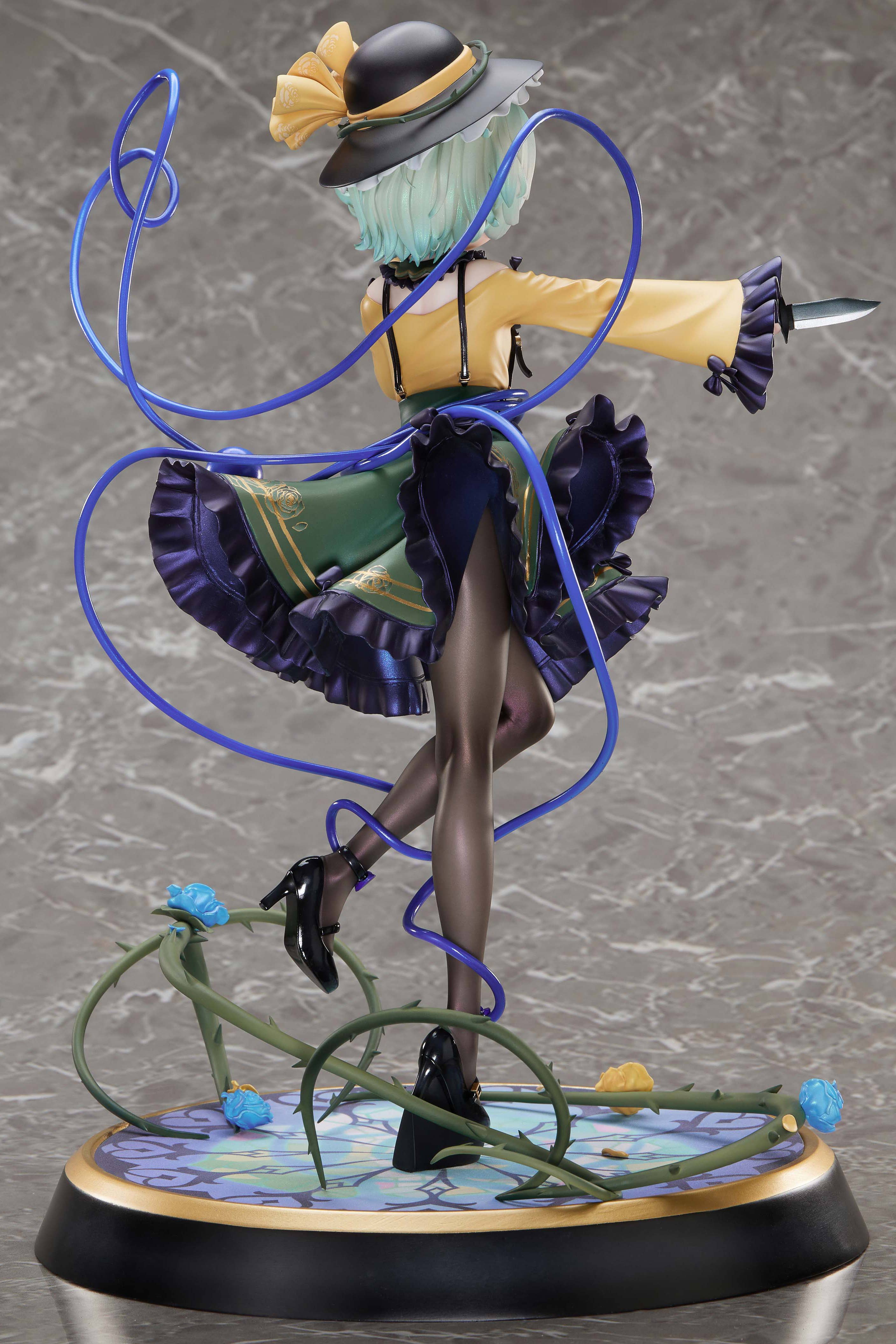 This lively figure of Koishi Komeiji from "Touhou Project" is brought to us by Magi Arts! Her bright expression, softly sculpted and carefully shaded hair, and the way her skirt is swaying with her movement are all highlights; she's even forming a heart in midair with the cord that's attached to her! Her base is included, and this deluxe edition also comes with a full-color shikishi and wall tapestry of the original illustration by Gen Ekita that inspired this figure! She also comes with two additional interchangeable facial expressions to enjoy. You'll love everything about her -- order her for your own collection today!