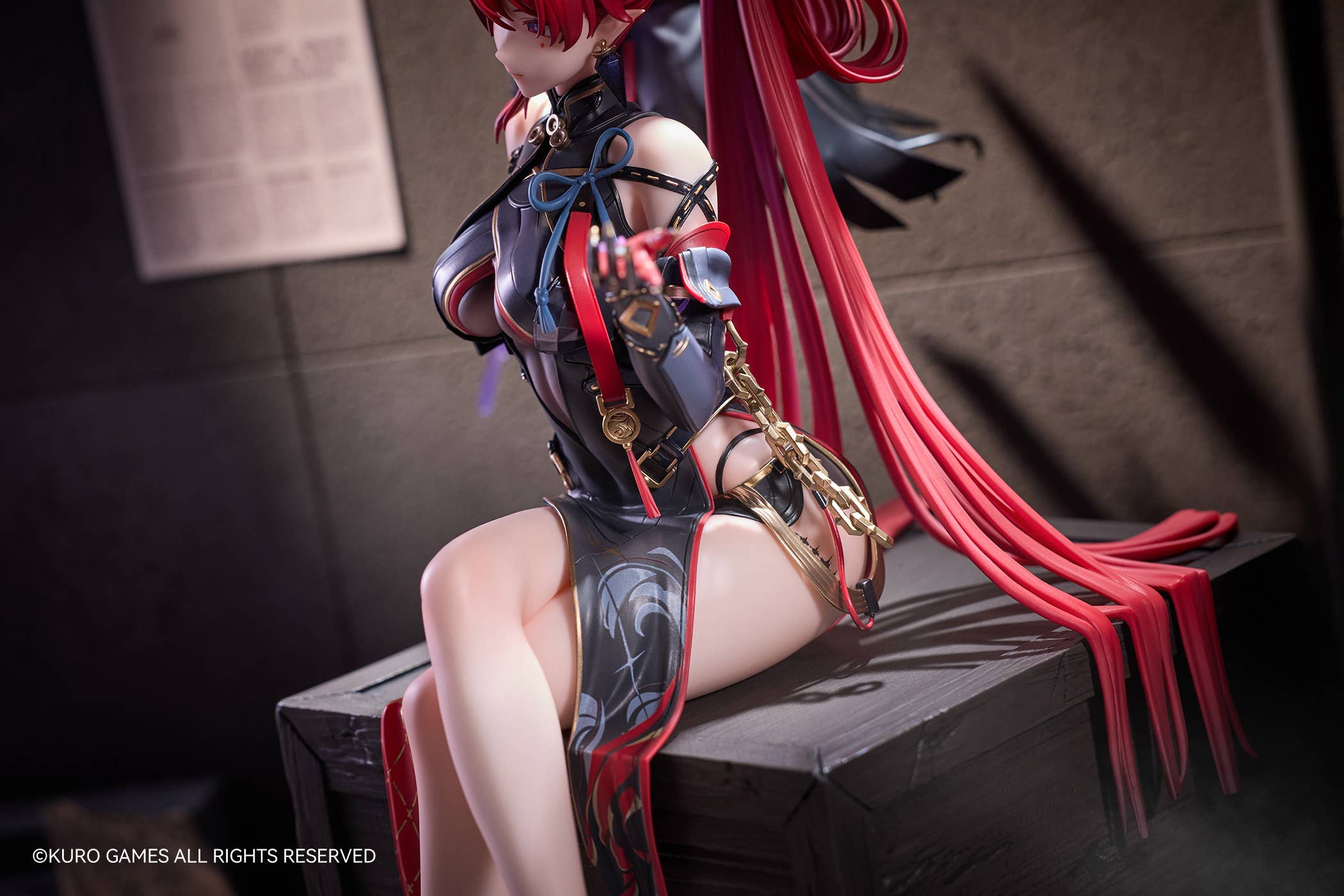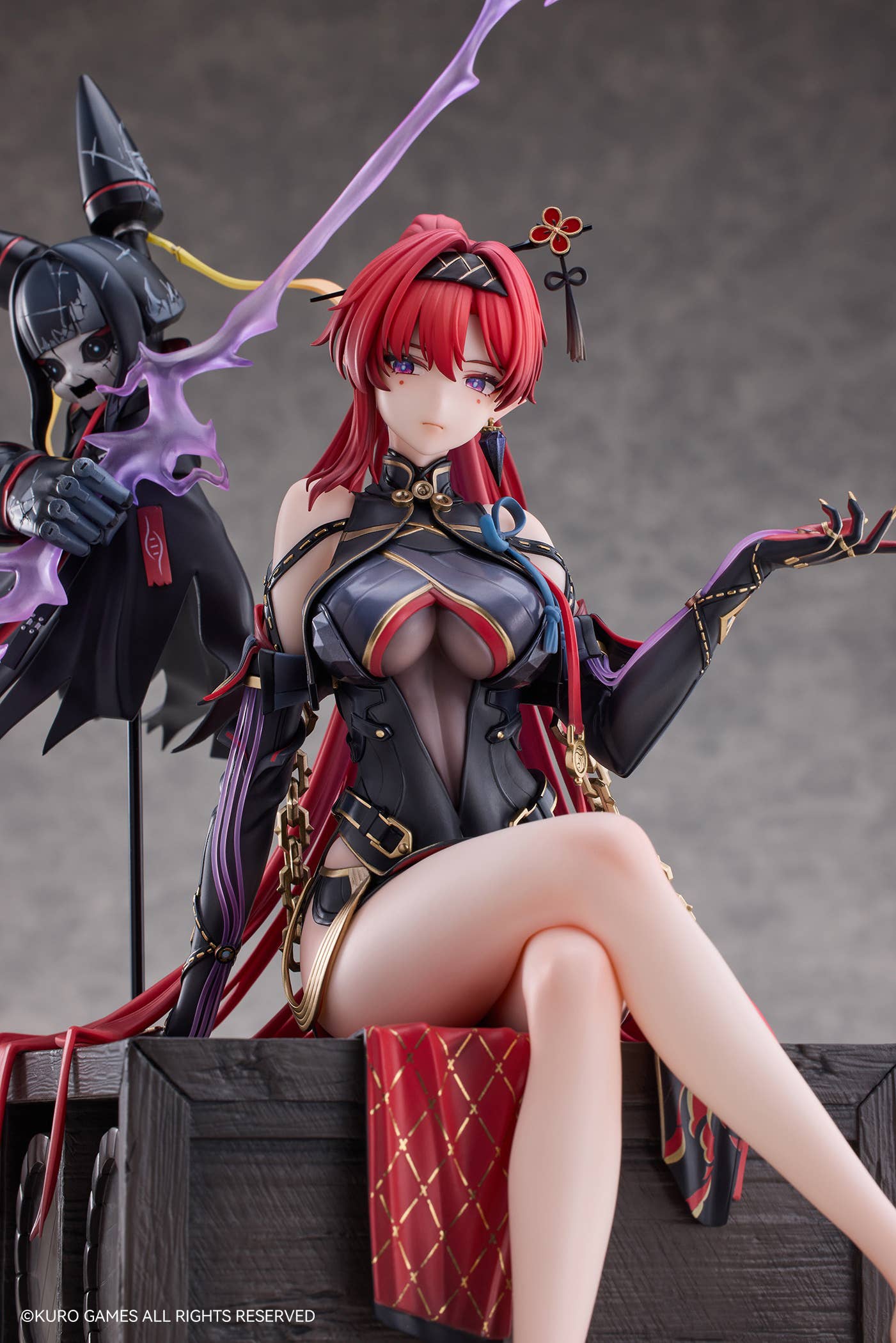 Yinlin from the game "Wuthering Waves" can now join your figure collection thanks to HanaBee! She sits on a crate with one of her puppets nearby, holding a gauntlet; Yinlin makes a casual gesture with one hand, Her long red hair flows behind her down the edges of the crate, and one of her high heels dangles carelessly on the toes of her right foot. Every detail of her outfit is carefully sculpted, and you'll love her expression, too! Order her for your own collection today!