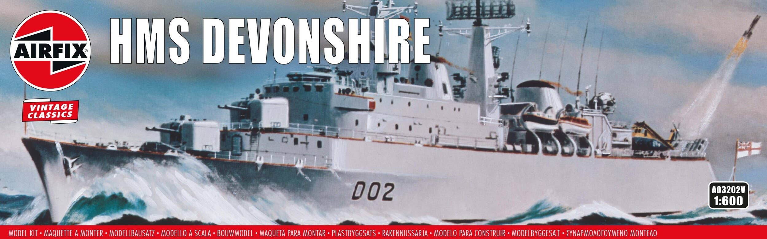Airfix's legendary 1/600-scale model kit of the HMS Devonshire is back as part of their "Vintage Classics" lineup, complete with the original box art! Order this classic kit for your own collection today!