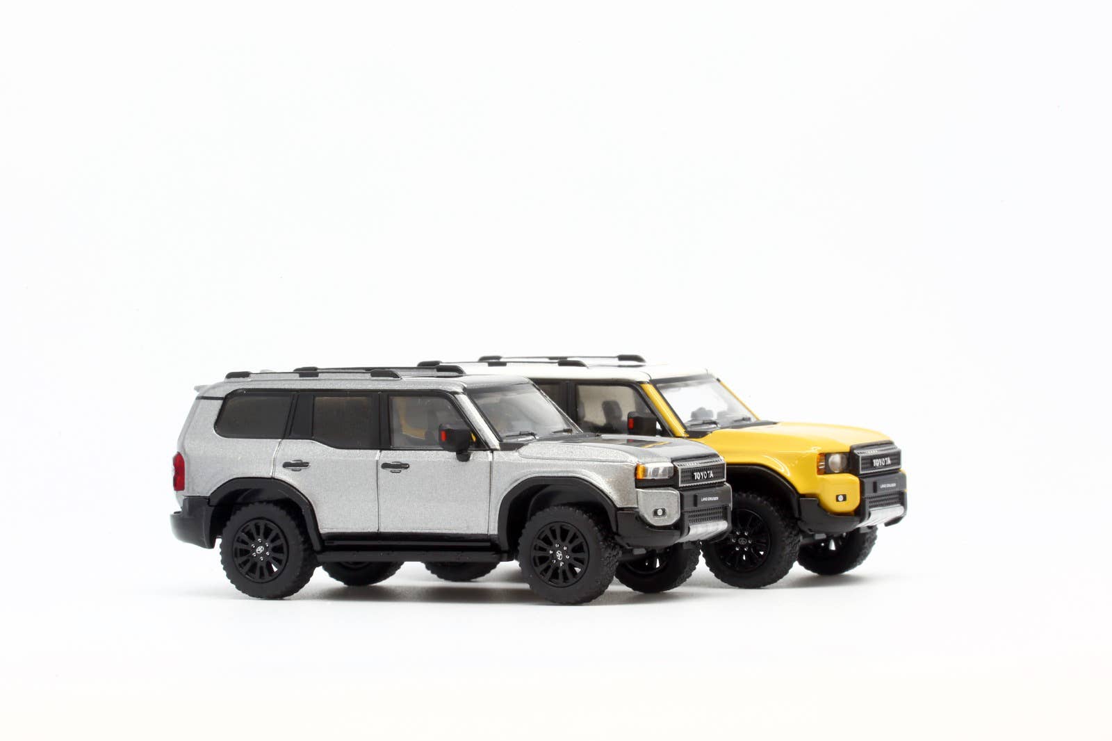 - Introducing the 1/64 scale mini car of the new Land Cruiser 250. The modern design features the traditional "TOYOTA" front grille, square side mirrors, and powerful fender flares, all meticulously replicated in detail.