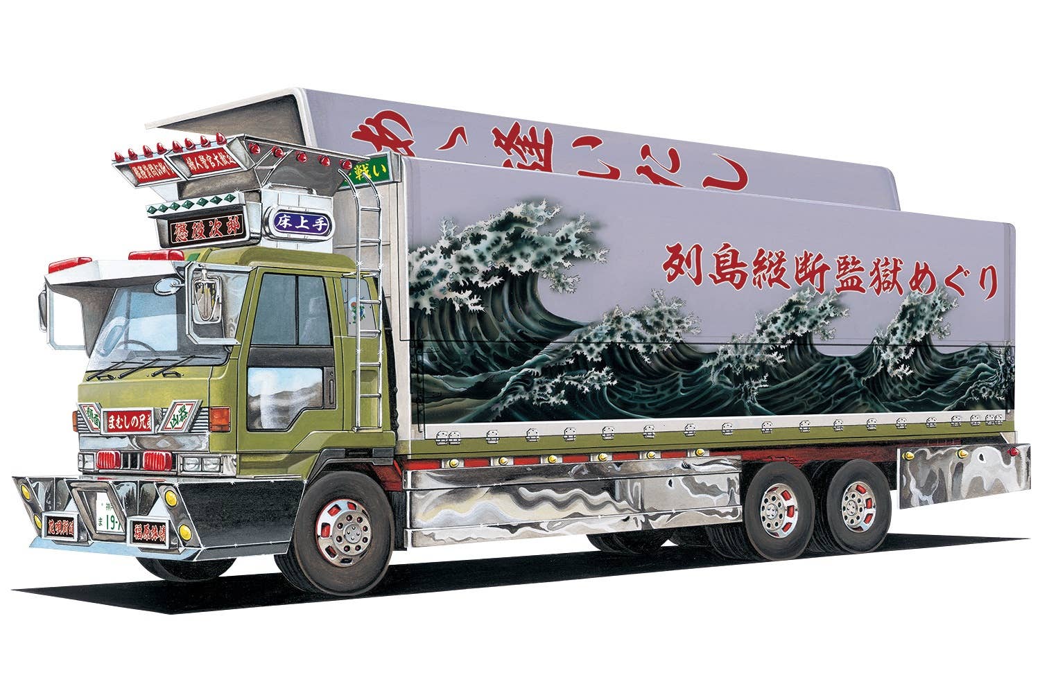 The 1/64 Mini Deko Next model-kit series bring us a lineup of palm-sized dekotora with full-scale decoration -- the perfect introduction of Dekotora to young people! You can it assemble as per the instructions or make it an original custom model -- it's up to you! This large flat-wing vehicle features an opening and closing wing and rolling tires; each part is plating-finished for extra gleam, too. Seals and Andon seals for the panels are included, as are marker lamps; this kit uses ten tires for Mini Deko Next. Order yours today!