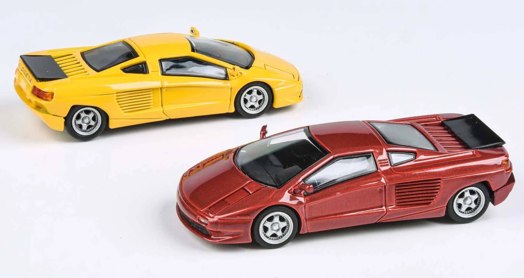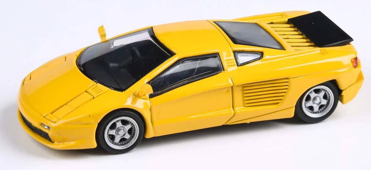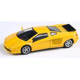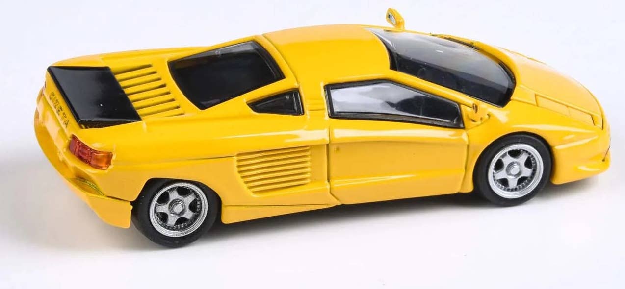 This is a fully assembled and beautifully finished car model, mounted on a black plastic base with a clear plastic cover to keep it free of dust and fingerprints.