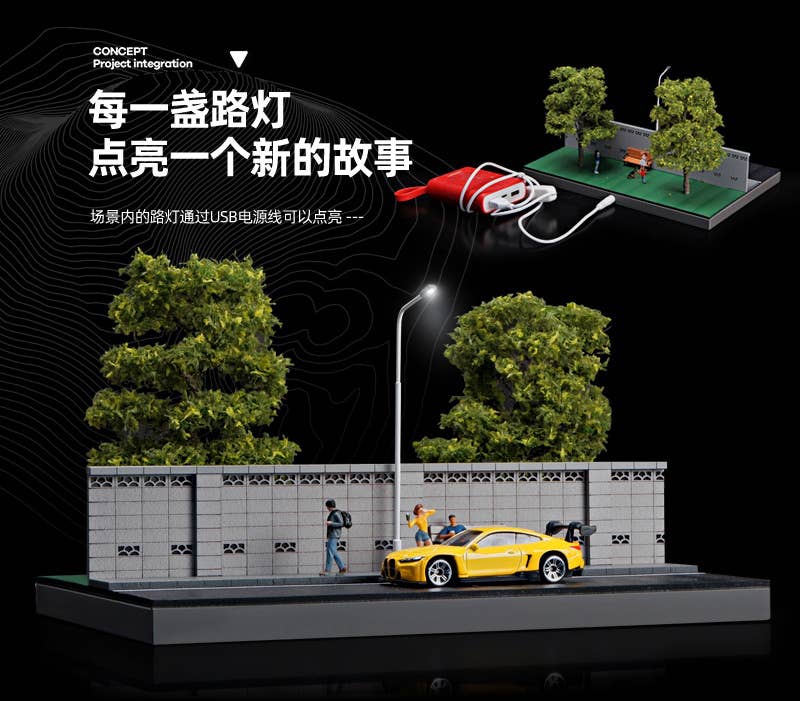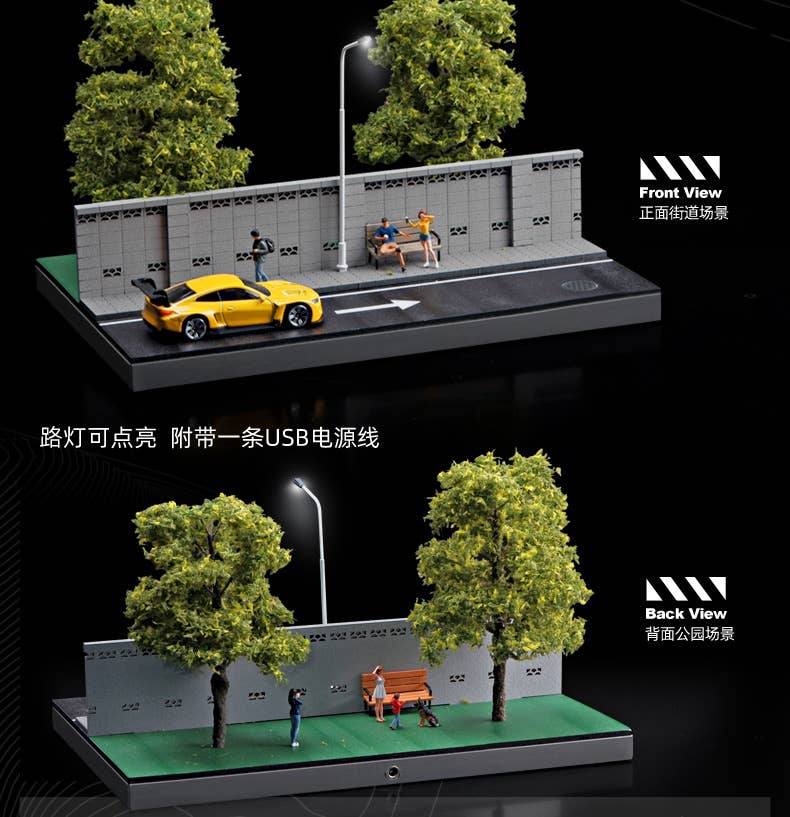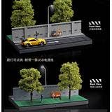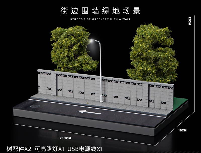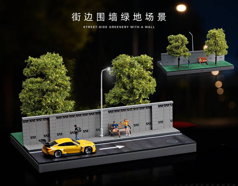 1/64 Diorama of a road along a wall and a green park