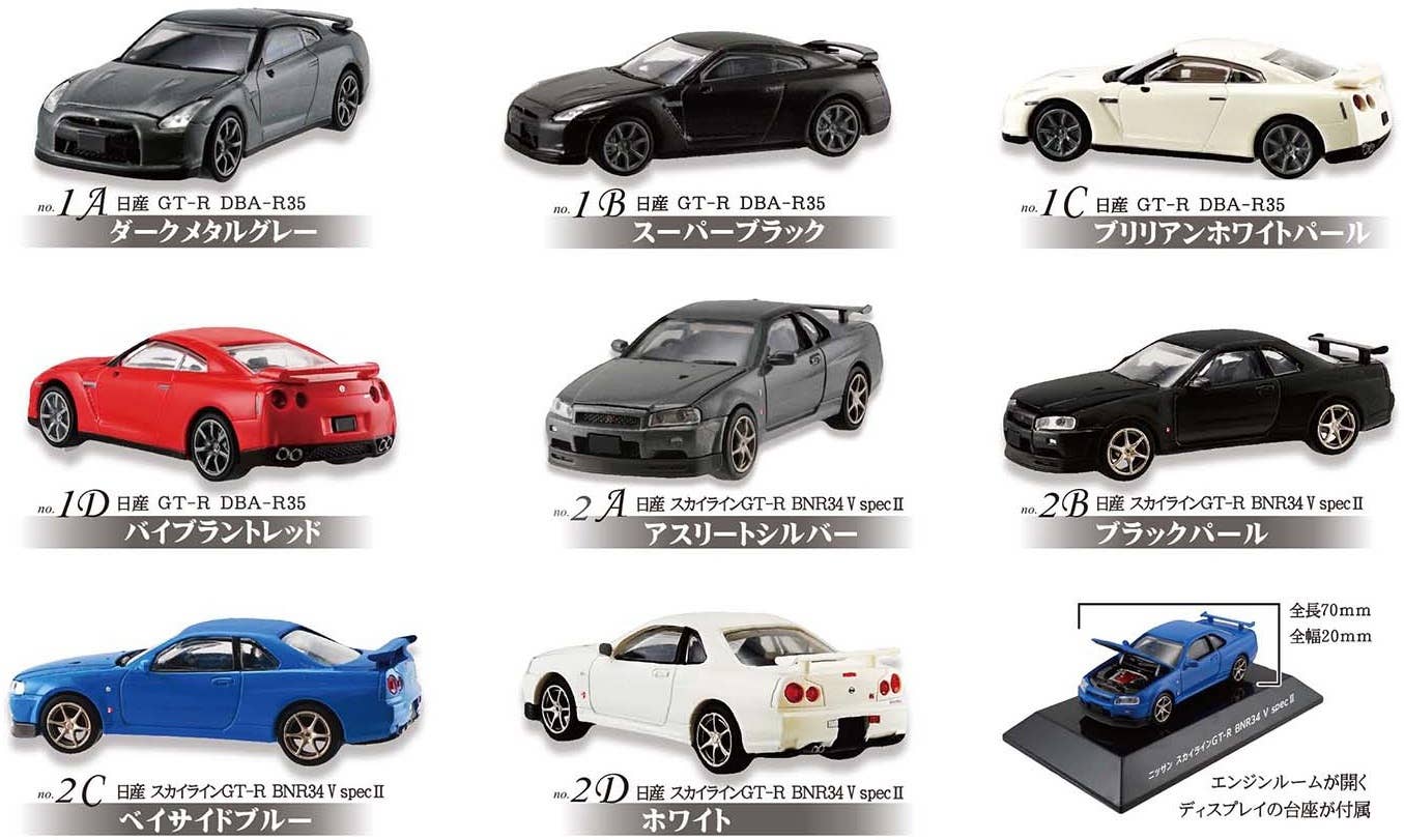 Nissan's GT-R celebrated its 50th anniversary in 2019! The R35, currently sold under the GT-R name, has become a favorite sports car worldwide, and its predecessor, the R34, still has many enthusiasts even after 20 years. Each of these prepainted models comes with a base for display, and a piece of gum, too. Order yours today!
