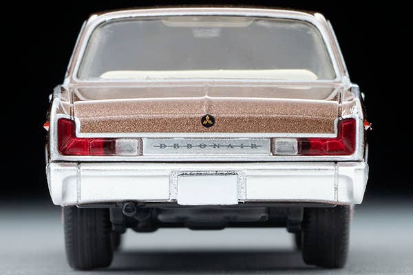 The Debonair, which debuted as Mitsubishi's first luxury car, features a distinctive design with sharp edges on both the front and rear of the vehicle.