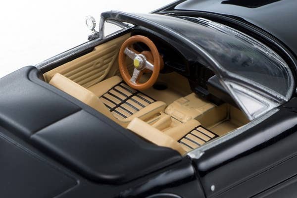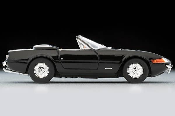 The LV Ferrari 365 GTS4 is nicknamed the "Daytona Spider." It debuted in 1969 and gained legendary popularity due to its neat style, and the fact that Ferrari didn't have an open two-seater at the time. Its production volume was 122 units. This display model from Tomytec replicates an early version with a plexiglass cover on the front; its hood can be opened. Please note that the side mirrors and front license plate will need to be installed by the purchaser. Order yours today!