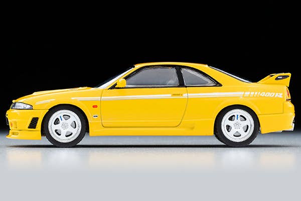 In TLV-NEO, the NISMO 400R will be commercialized with completely new molds. Featuring unique over-fenders, a specially shaped hood, front and rear bumpers, and more, the body is entirely different from the normal Skyline GT-R. Wheels and seats are also crafted to match the shape of the 400R. Please appreciate the NISMO 400R, a special presence even in the highly regarded BCNR33 series.