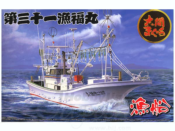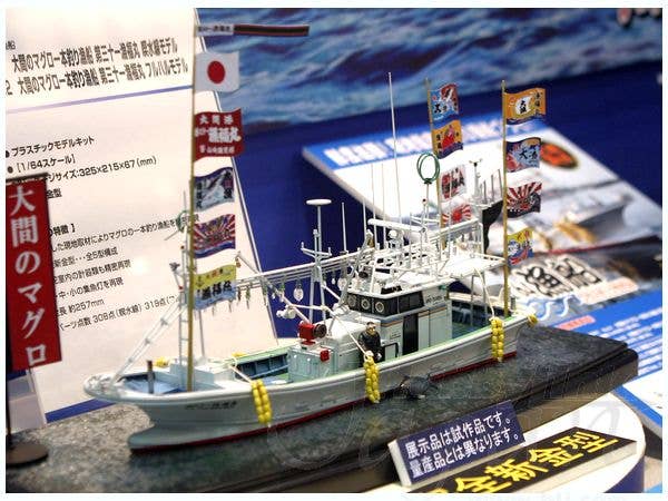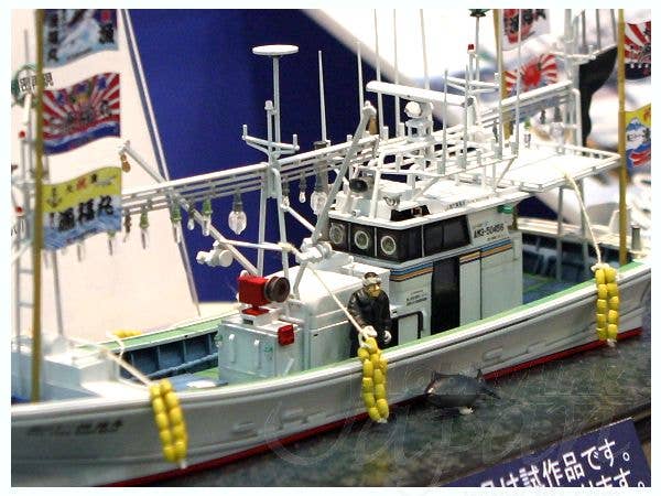 A very common sight around coastal areas in Japan, we now get a kit of the ubiquitous tuna fishing boat! This version is a waterline model. (A full-hull version is also available; it's linked below. )