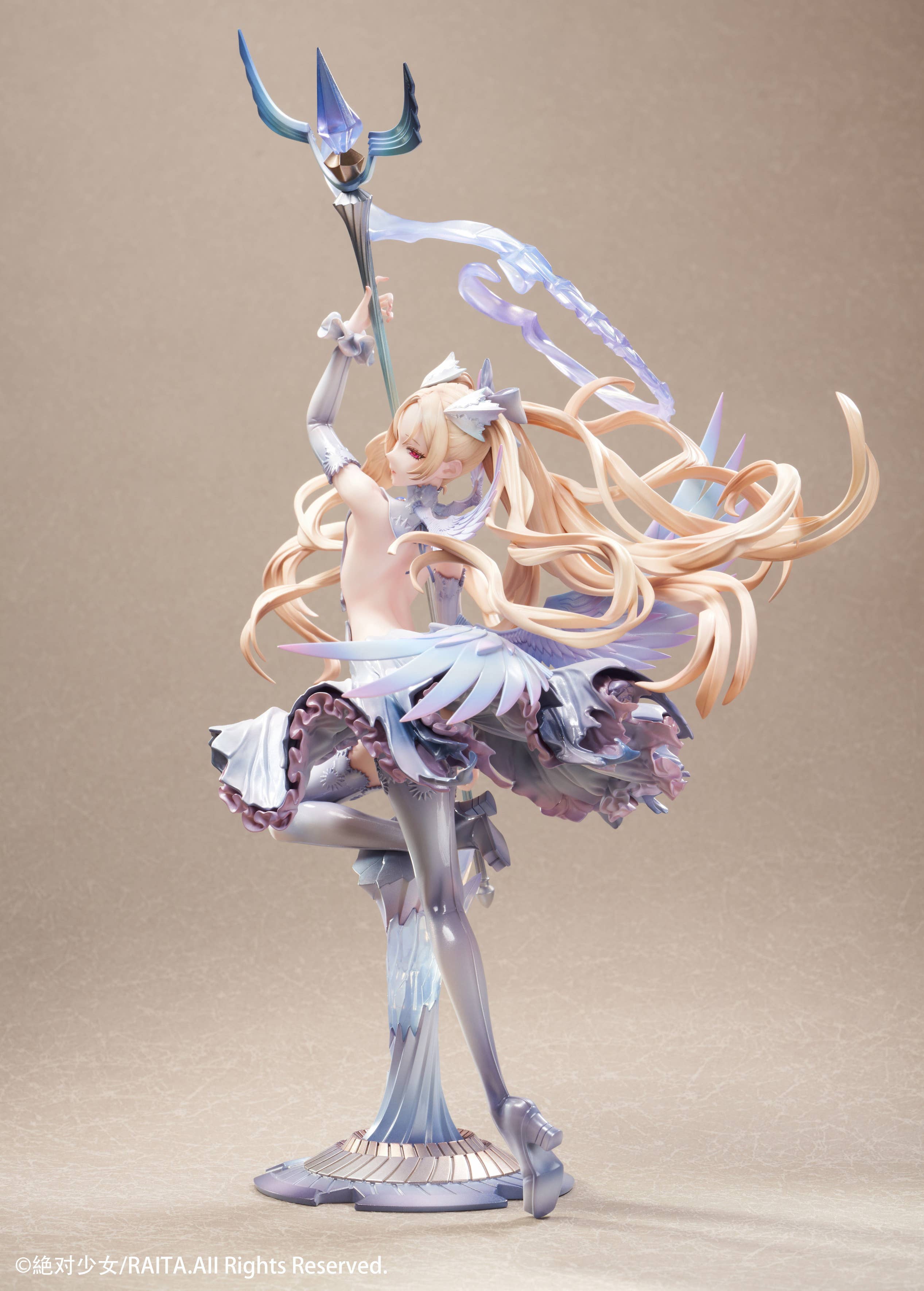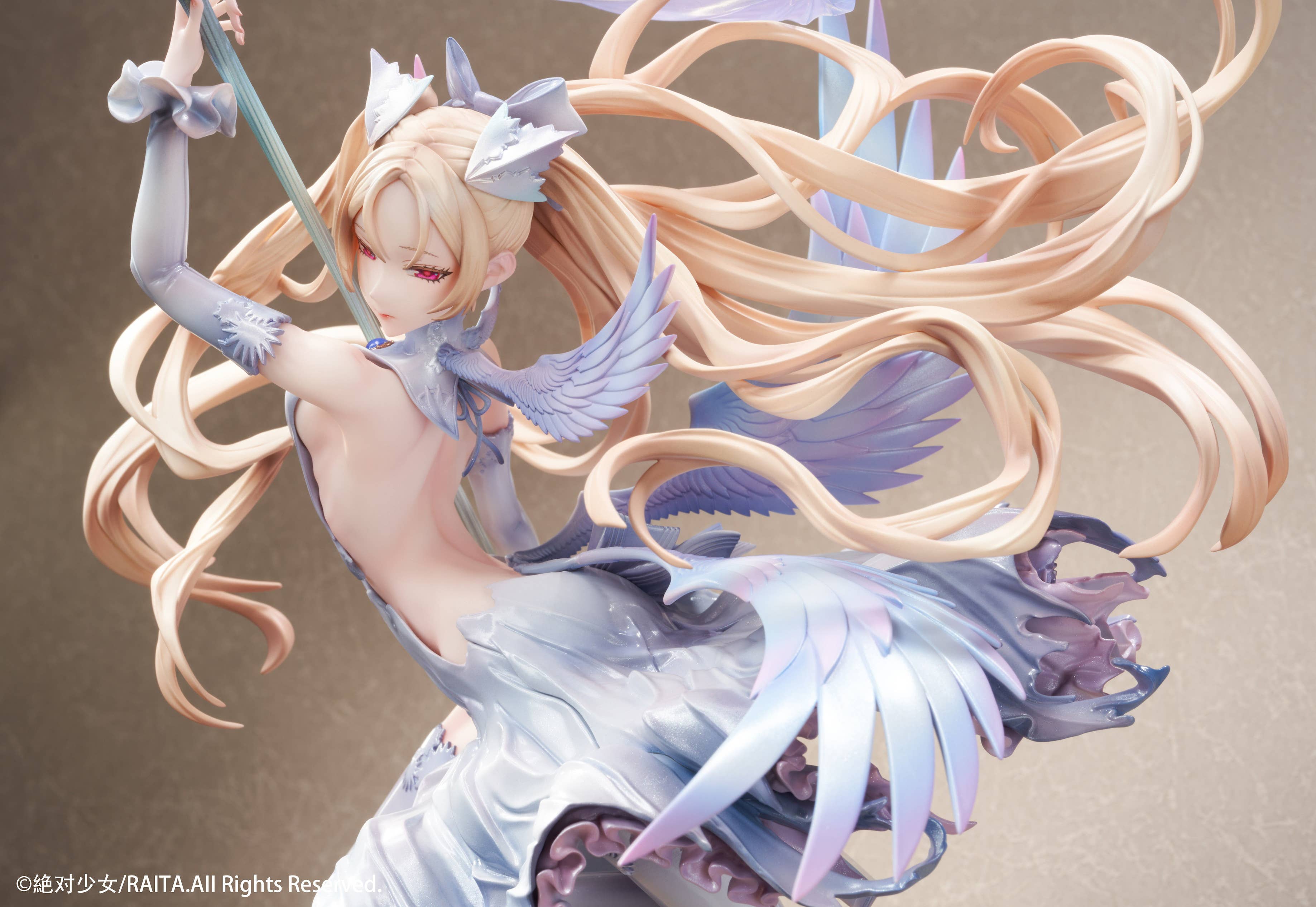 As illustrated by the popular artist RAITA, the original character Kotone Sasaki has now been brought to life in a stunning figure from Hobby Sakura! She's part of the "Absolute Whiteness: Magical Girl" series, and she'll grab your attention with her swirling skirt, graceful pose, and the wild motion of her twin-tails hair! This figure is loaded with amazing details, like the individual feathers in her wings, the delicate wrinkles and folds in her skirt, and the designs at the cuffs of her thigh-high boots. Her ornate base is included. Add a touch of magic to your collection, and place your order today!