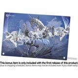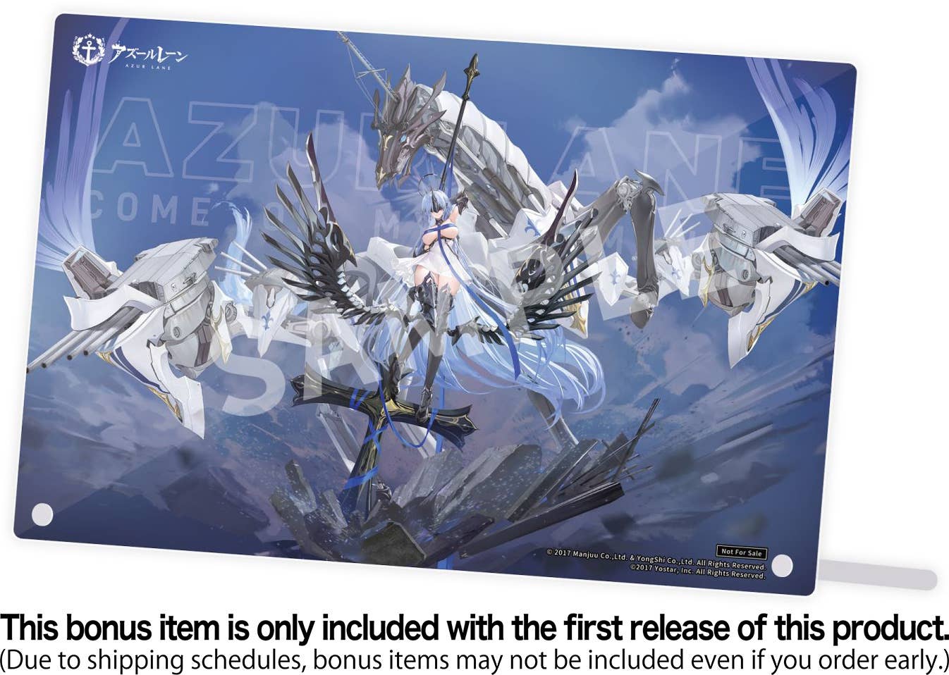 Alsace from the hit mobile game "Azur Lane" is now a figure from Apex! She leans gracefully against her huge weapon, showing off her breathtaking curves, with her hair and translucent skirt streaming in the wind. The blue ribbon across her chest is delicately sculpted yet powerful, enhancing the translucence of her bare skin. Her armored legs and arms feature paint that emphasizes the metallic feel and sharp shape of the armor for a solid texture; the armor, her weapon, and the majestic metallic wings all contrast with her yielding flesh. She has two additional interchangeable faces without the mask -- an embarrassed expression, and a smile. As a special bonus, a two-layer acrylic panel will be included with the first run of this figure (this item is only included with the first run of this figure; if yours does not include it, it was not part of the first run. The bonus item may also not be included, even with early orders, due to shipping order restrictions)! Her base is included too. Order the unforgettable Alsace for your own collection today!