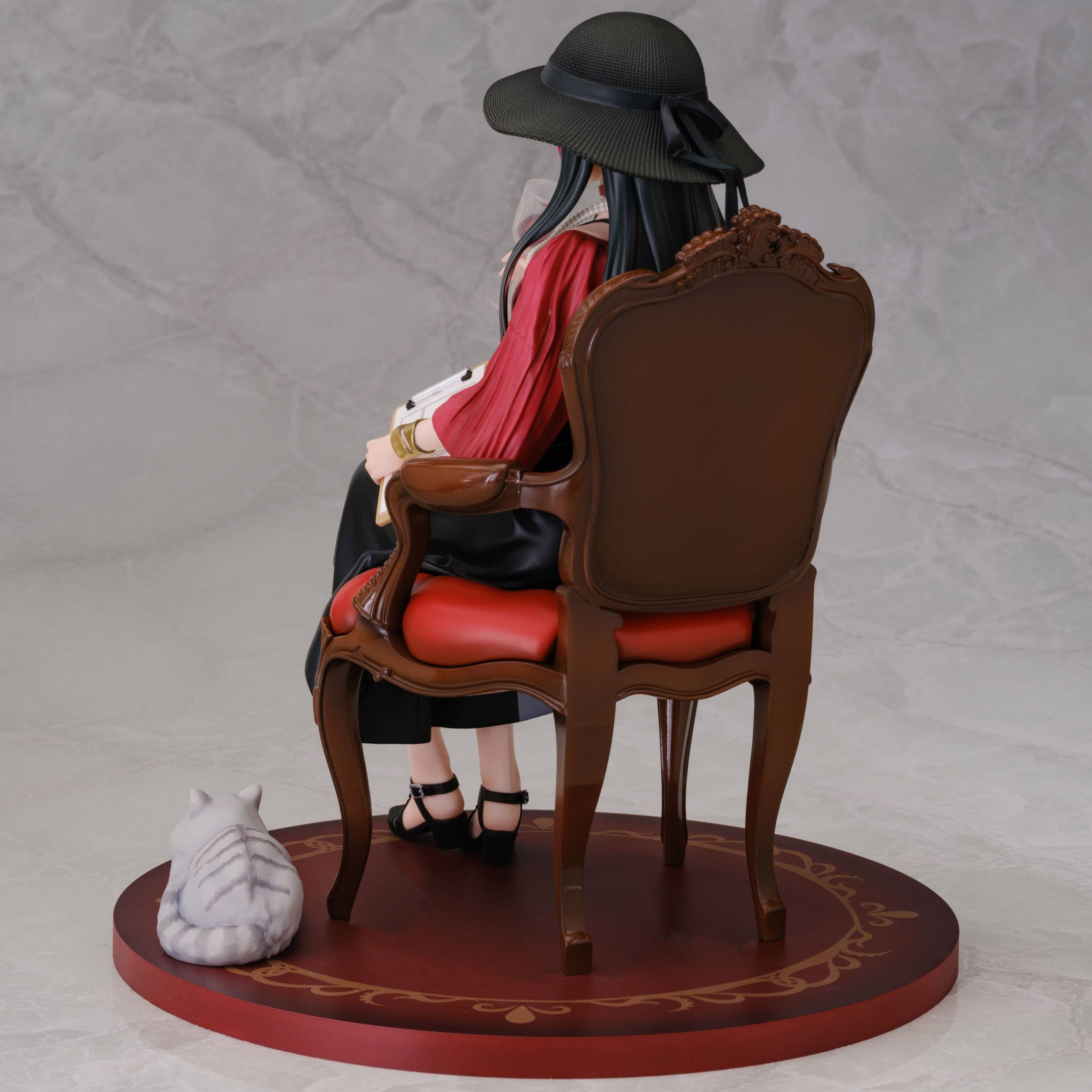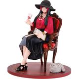 The manga and doujinshi creator known as Crimson recently started her own YouTube channel, and now DMM.make brings us a display figure of her high-performance 3D avatar! Her trademark broad-brimmed black hat, casual blouse, and red streaks in her hair are all carefully duplicated; you'll love her soft smile, and her beloved cat, Kurimnyan, who crouches nearby. She holds a glass of wine in one hand and a clipboard with paper ready to receive her newest manga art in the other. Order her for your own collection today!