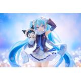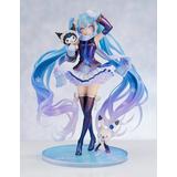 The Snow Miku version of Hatsune Miku and Sanrio's beloved Kuromi combine in this delightful figure from Good Smile Company, inspired by an illustration by PiPi! Kuromi has mischievously dyed parts of Miku's outfit black, and Miku doesn't seem to mind at all! Translucent parts are incorporated into Miku's twin tails to give them a light, airy appearance, with pearlescent paintwork making the colors shift depending on the angle of the light. Her base is included. Order this figure of Snow Miku and her new friend Kuromi for your own collection today!