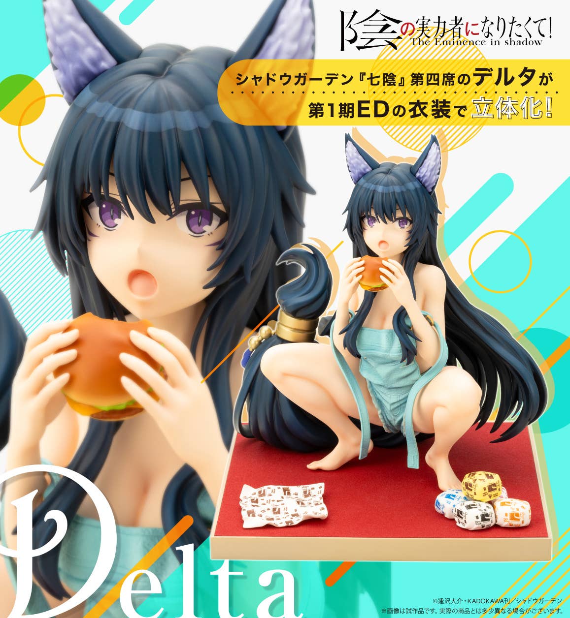 Delta, the fourth member of Shadow Garden in "The Eminence in Shadow," gets a new figure from Kotobukiya, as she's seen in the ending titles of the anime version! She's devouring a tuna hamburger, with several more at her feet; she has a slightly surprised look on her face, as if somone walked in on her taking a snack break! Her base is included. Order her for your own collection today!