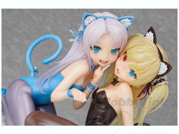 Maria Takayama from "Boku wa Tomodachi ga Sukunai" makes an adorable kitty girl! She's all dressed up in blue and purple, with a cat-ears headband, twisty tail, elegant high heels and a sweet smile. She's about 15cm tall, and she comes with a round checkerboard-patterened base. This is the Maria figure only--if you want to duplicate the pose with Kobato shown in some of the prototype photos shown below, check out the Kobato figure linked below. Take this pretty little kitty home with you now!