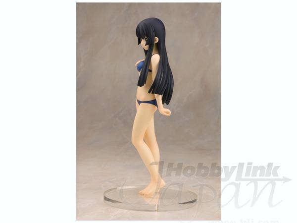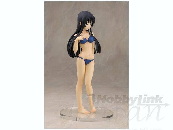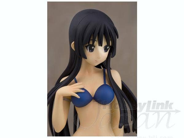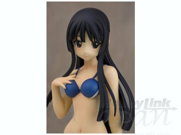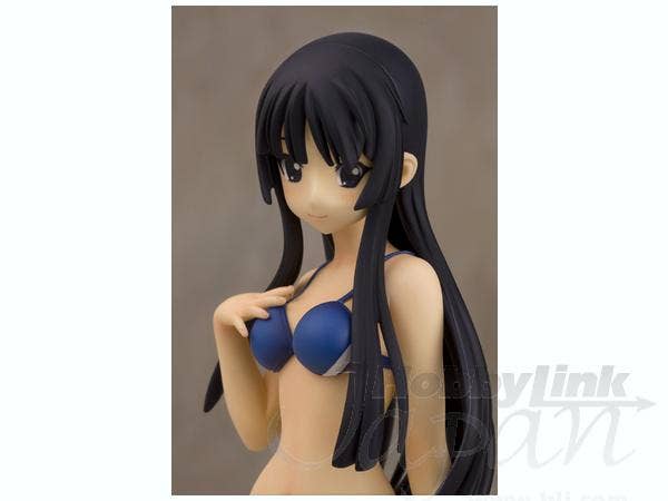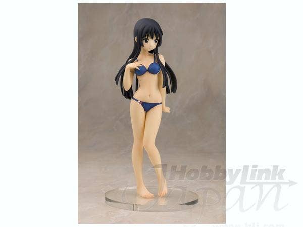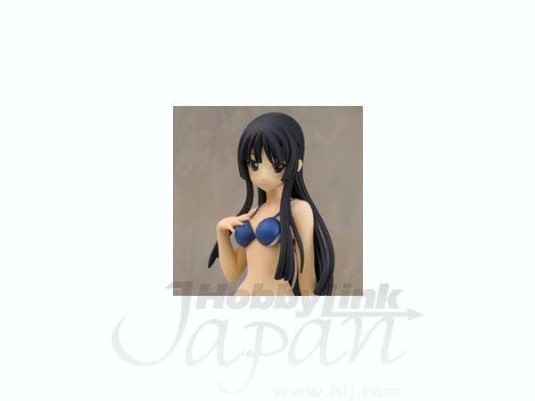 Mio Akiyama from "K-On!" is just a little bit shy in her navy-blue bikini with accent stripes of red and white, but she's smiling bravely and posing just perfectly. She's about 20cm tall, and comes with a round base. She was sculpted by MOON. Add her to your collection today!