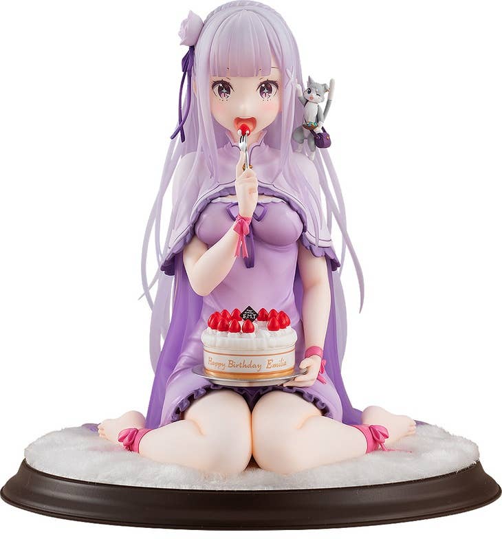 Emilia is featured wearing a slightly different from usual outfit with an expression of pure celebratory joy on her face. Be sure to add her to your collection!