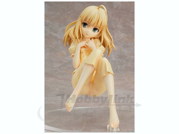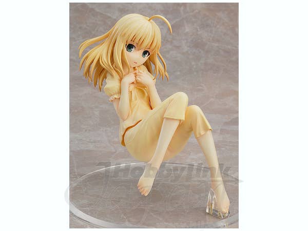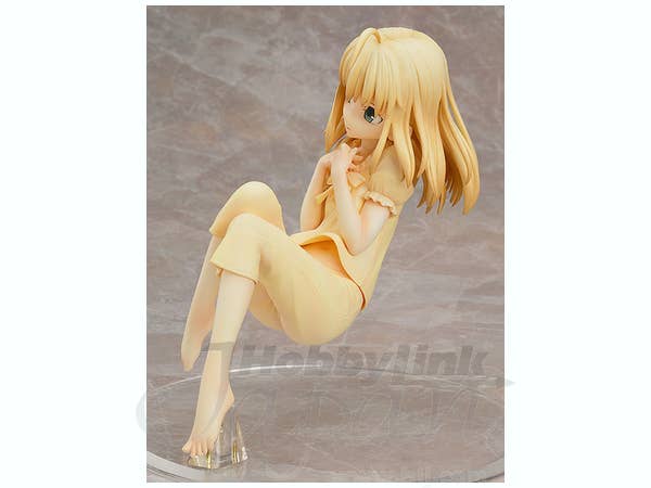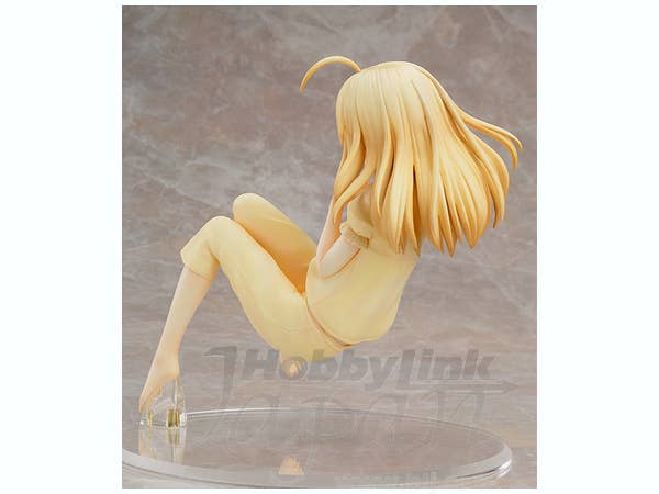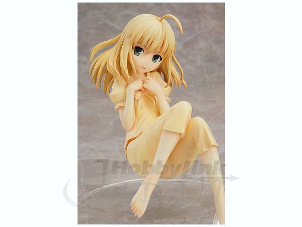 Saber is a tough and capable young woman, but this figure shows her sweet side! Wearing cute yellow pajamas, she's ready for sleep with her hair unbound and her feet bare. Her unique base will keep her suspended as if floating in her relaxed pose. About 14cm tall, she's ready to make you smile right now!