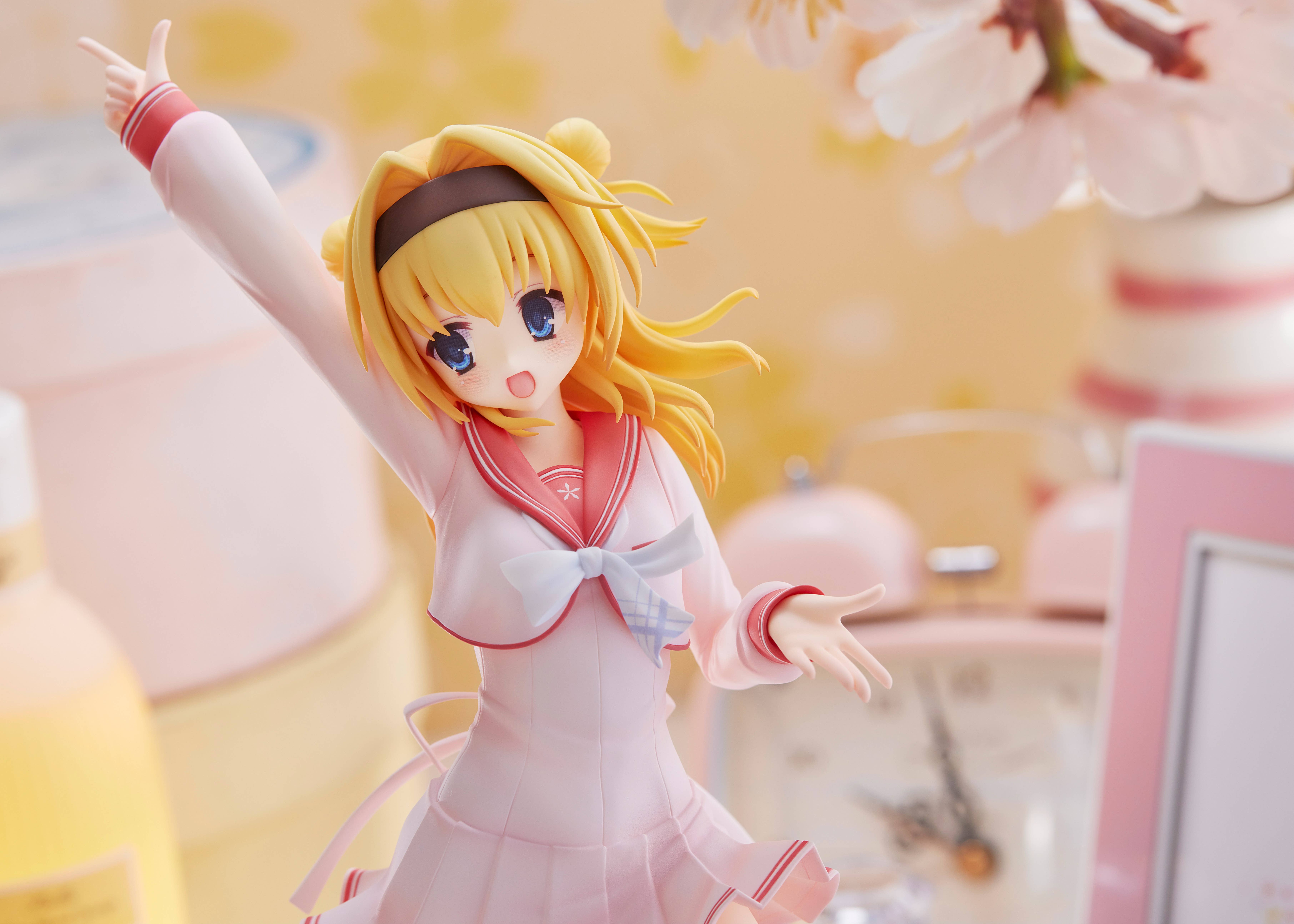 Sana Chitose, the younger sister of the main character from Yuzu Soft's popular game "Tenjin Ranman: Lucky or Unlucky!?", gets a new figure from Alice Glint in a powerful pose! Her enthusiastic smile and cute uniform are incredibly charming; a jacket part with an untied scarf is included too, so you can display her with a different look. Order this cheerful little darling for your own collection today!