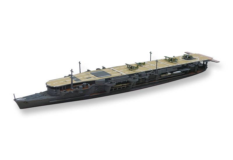 Ryujo was a light aircraft carrier of the I.J.N. during the early 1930s. Small and lightly built in an attempt to exploit a loophole in the Washington Naval Treaty of 1922 that carriers un 10,000t standard displacement were not regarded as aircraft carriers, Ryujo had her first refit after the Tomozuru incident, followed by a second refit to incorporate the lessons learned from the Fourth Fleet Incident. With her stability improved, Ryujo returned to service and was employed in operations during the Second Sino-Japanese War. During World War II, se provided air support for operations in the Philippines, Malaya, and the Dutch East Indies. Ryujo next participated in the Battle of the Aleutian Islands in June when she first carried Zero fighters. She was sunk by American carrier aircraft at the Battle of the Eastern Solomons on August 24th, 1942.