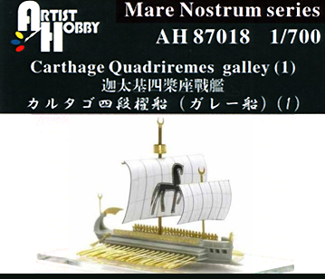 This is a highly detailed 1/700 resin model of the Carthage Quadrireme war galley, which is a war ship of the ancient Carthaginian civilization. An old city that grew and dominated the Mediterranean during the first millennium BC. The hull of this ship is developed with resin, while other parts are reproduced with photo-etched parts.
